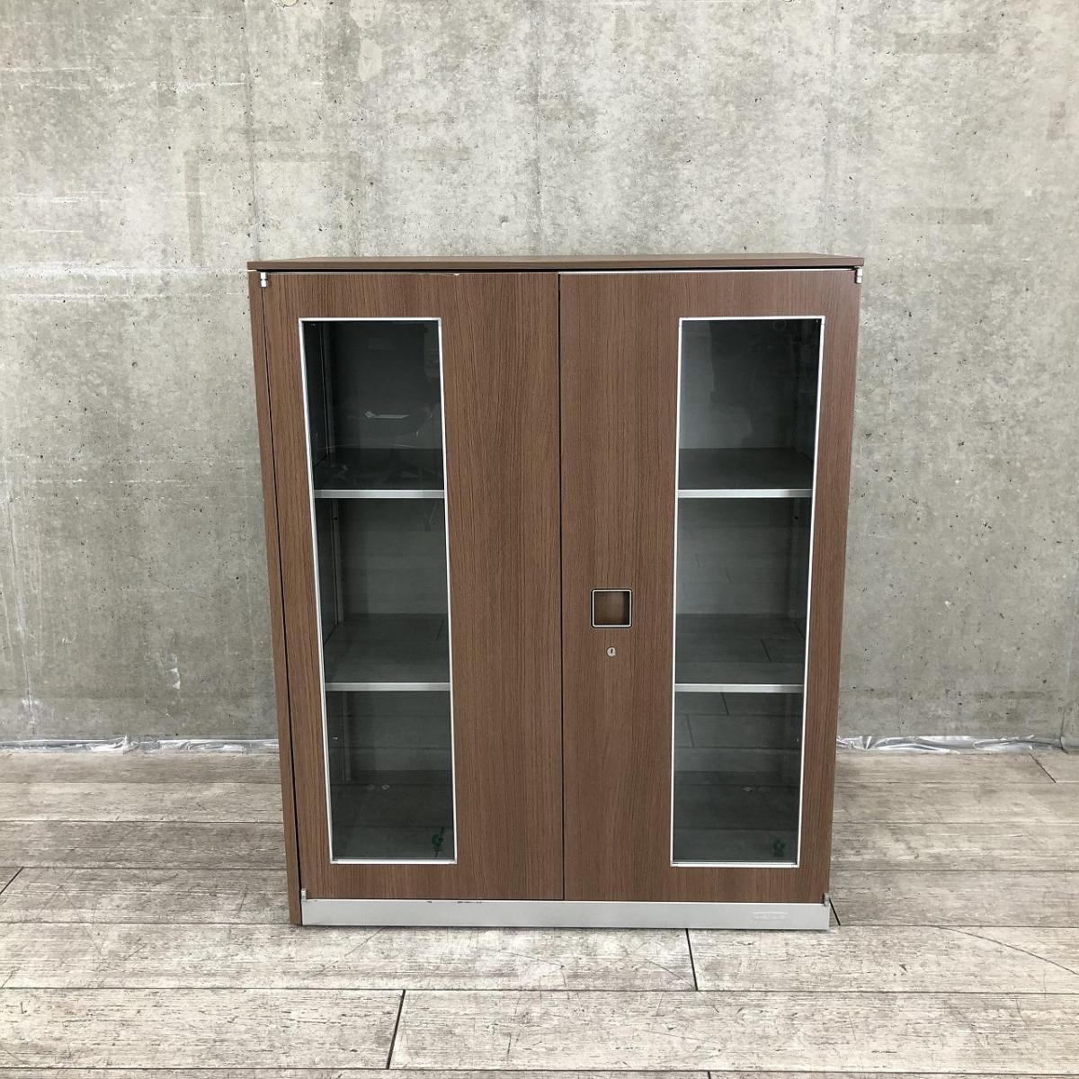 【西】~オフィスに上質な雰囲気をプラス~【オカムラ】【レクトライン】【両開き書庫】【木目ダーク】【ガラス戸】【ローキャビネット】【チェア】【椅子】【イス】【事務椅子】【デスク】【机】【書庫】【書棚】【棚】【ラック】【収納】【格安】【安い】【メーカー】【レイアウト変更】【模様替え】