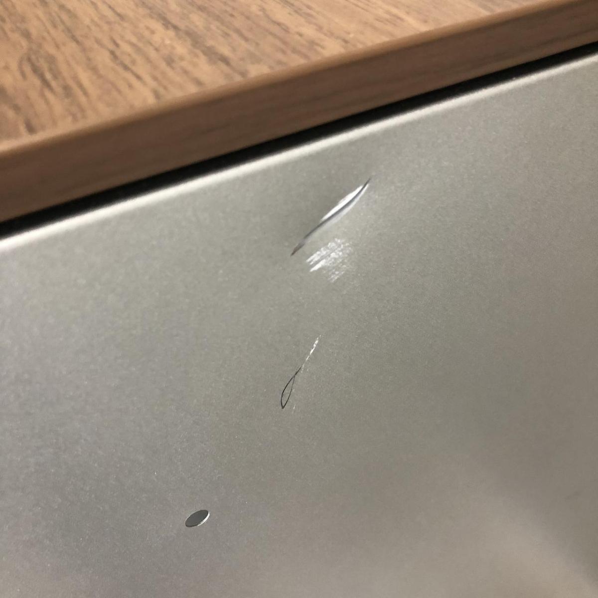 - 目立つ箇所あり傷・凹みが多数、深い傷・凹みが一部ある。(例、天板、正面、背部、サイド部分にある。)