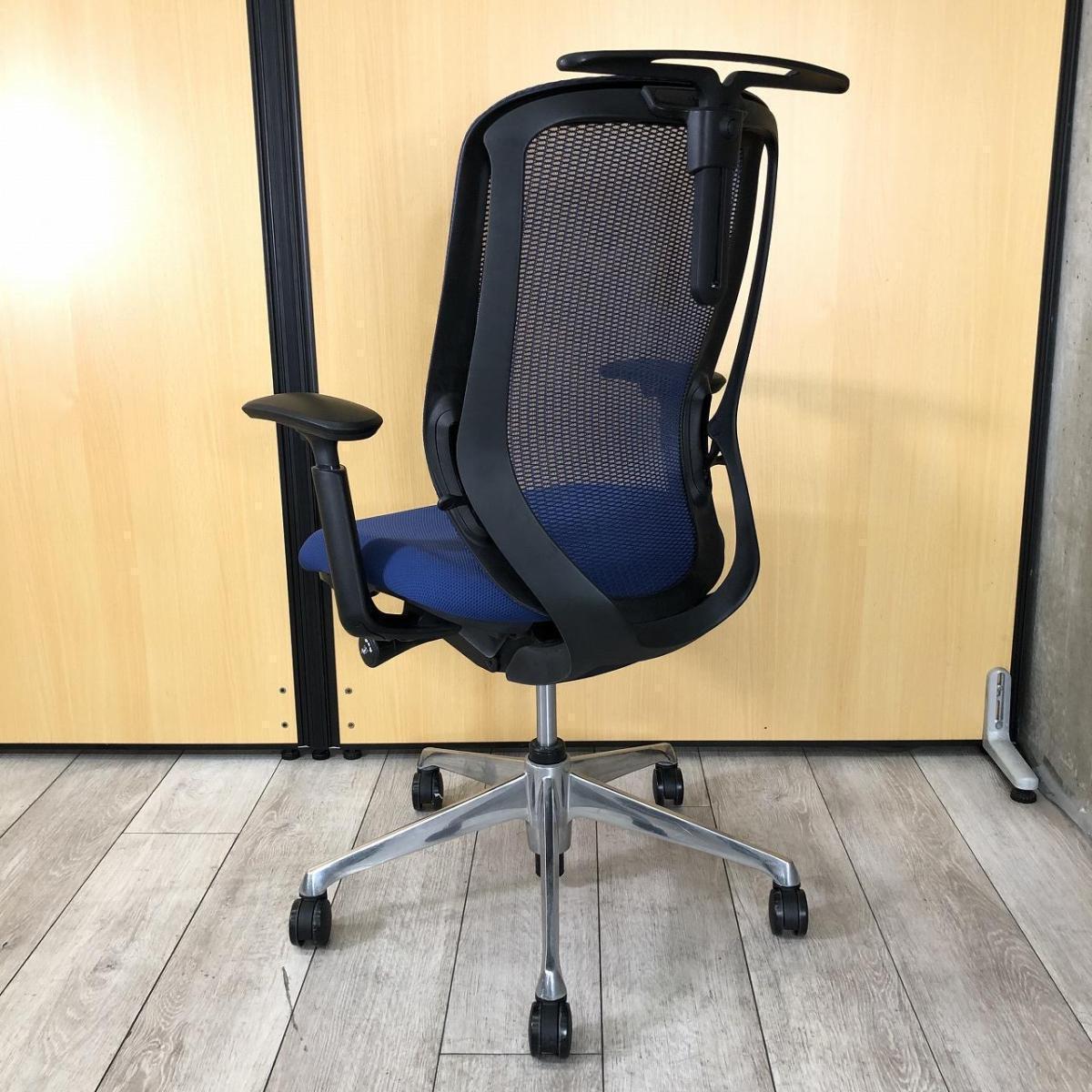 【新品ヘッドレスト交換済み】オカムラ/シルフィー/ブルー/可動肘