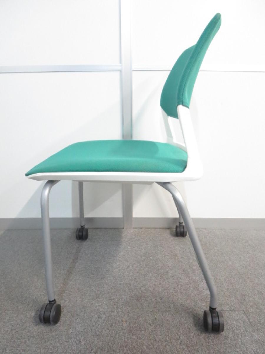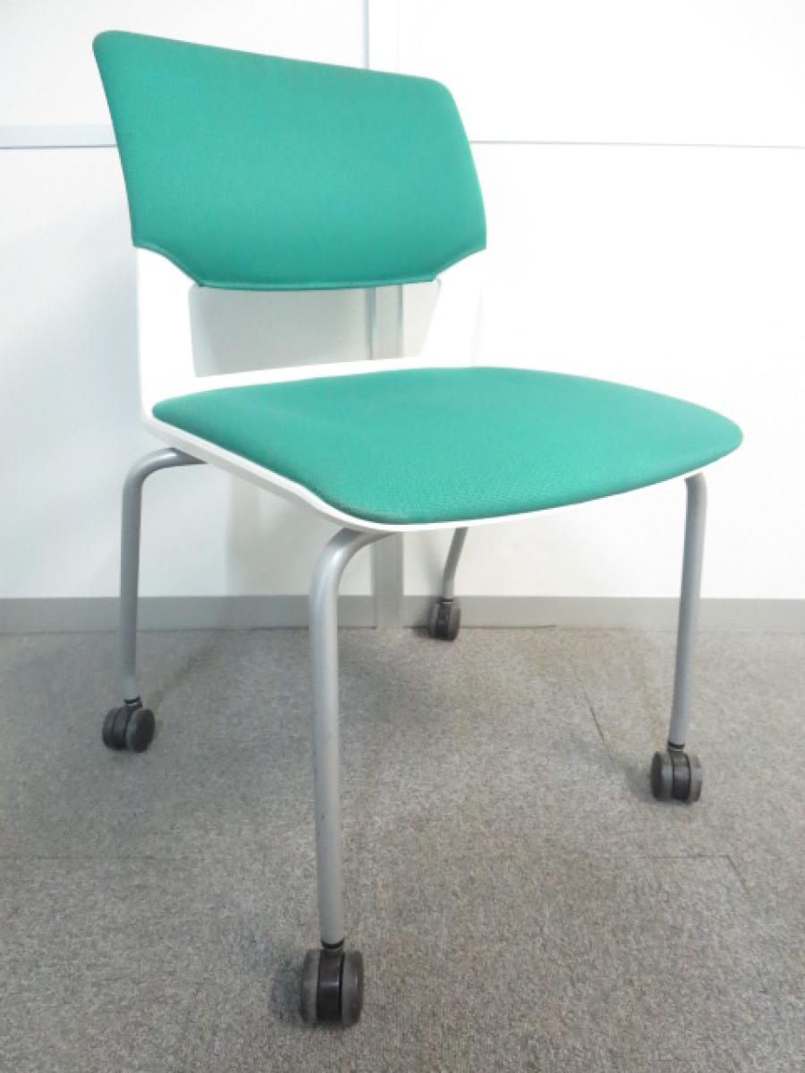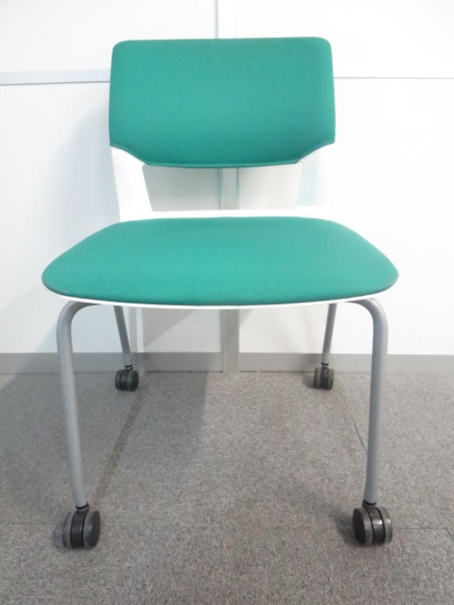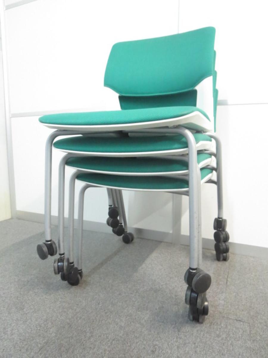 【キャスター付きで使いやすい!ミーティングに最適な会議用チェア!】■コクヨ製 160シリーズ スタッキングチェア ミーティングチェア ■キャスター付き ■グリーン- つくば店