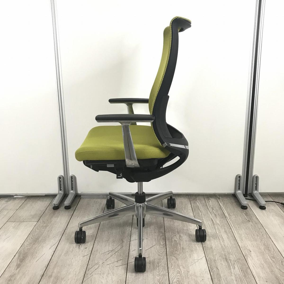 【入替セール】【前傾から後傾まで様々な姿勢をサポート!ワンランク上の座り心地!】■コクヨ(KOKUYO)製 ベゼル(Bezel)チェア 肘付き ハイバック モデレートタイプ ■固定肘 ■リーフグリーン × ブラックシェル ■ランバーサポート付き- 春日部・越谷店