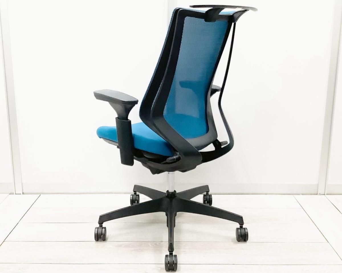 ■KOKUYO/コクヨ ■デュオラ(Duora)チェア ■プルシアンブルー×ホワイトシェル×ブラック脚 ■肘付き/可動肘 ■ハイバック ■背面/メッシュ 座面/布 ■コートハンガー付き ■オススメ/人気/定番商品 【弊社使用欄:A01040309 K】【ID】