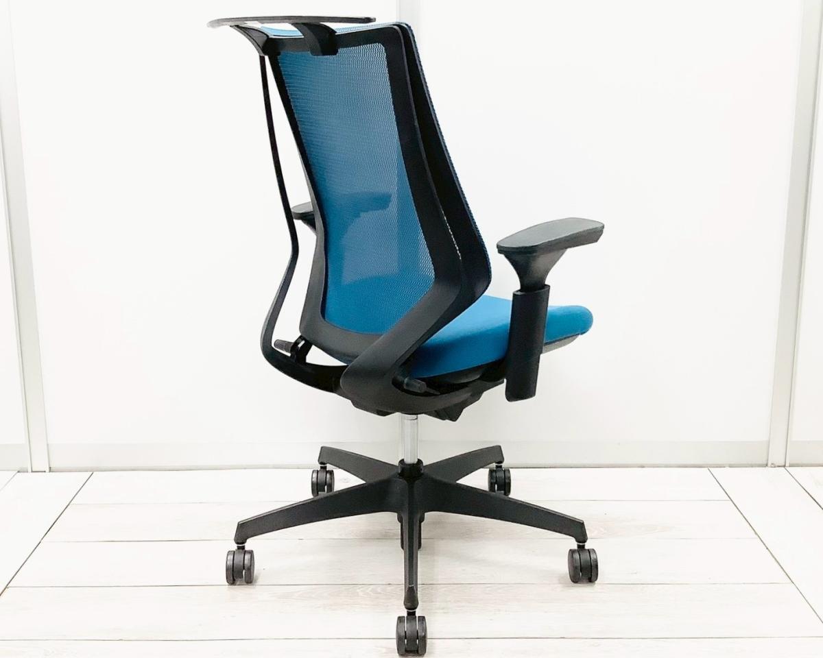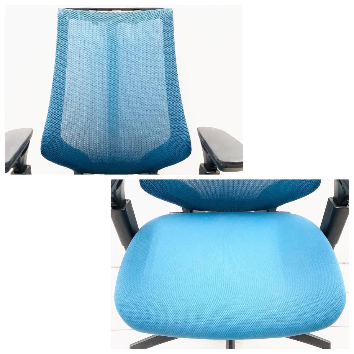 ■KOKUYO/コクヨ ■デュオラ(Duora)チェア ■プルシアンブルー×ホワイトシェル×ブラック脚 ■肘付き/可動肘 ■ハイバック ■背面/メッシュ 座面/布 ■コートハンガー付き ■オススメ/人気/定番商品 【弊社使用欄:A01040309】【ID】
