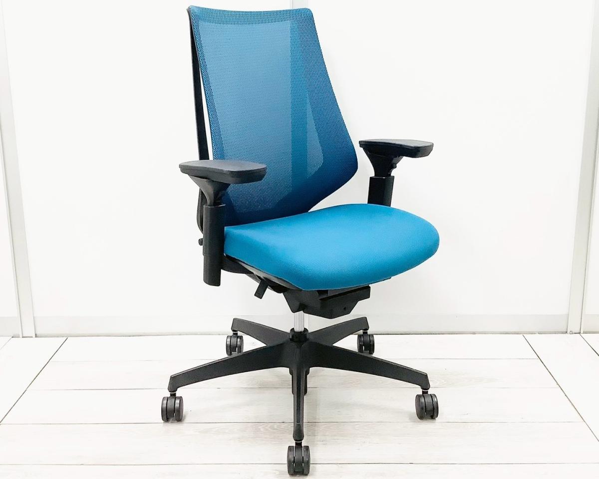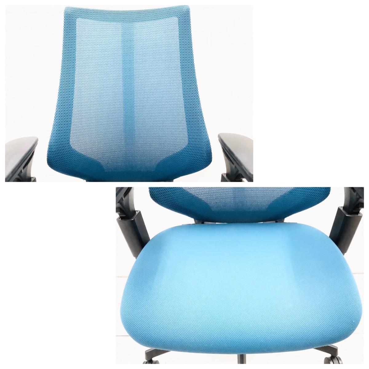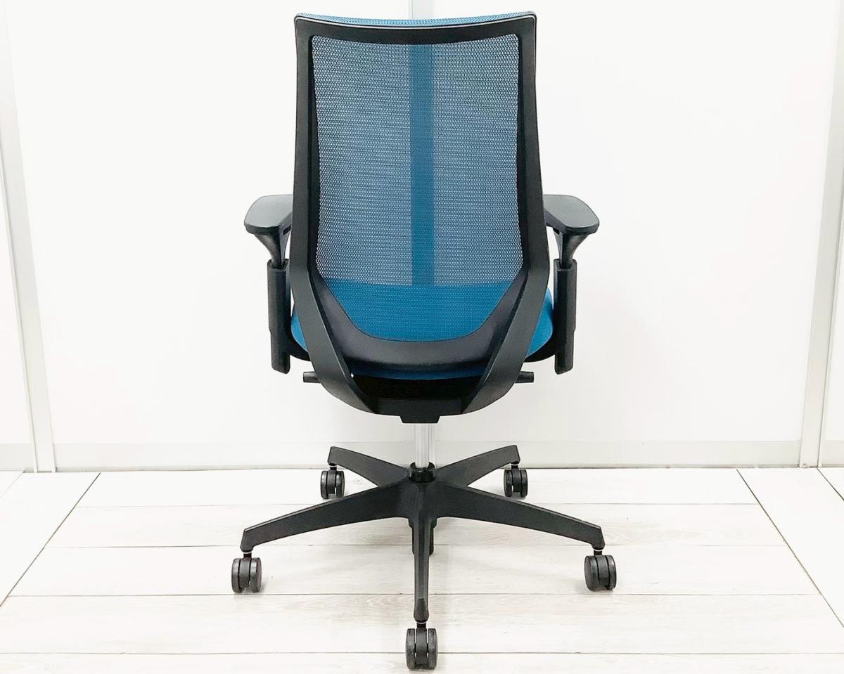 ■KOKUYO/コクヨ ■デュオラ(Duora)チェア ■プルシアンブルー×ホワイトシェル×ブラック脚 ■肘付き/可動肘 ■ハイバック ■背面/メッシュ 座面/布 ■コートハンガー付き ■オススメ/人気/定番商品 【弊社使用欄:A01040309】【ID】
