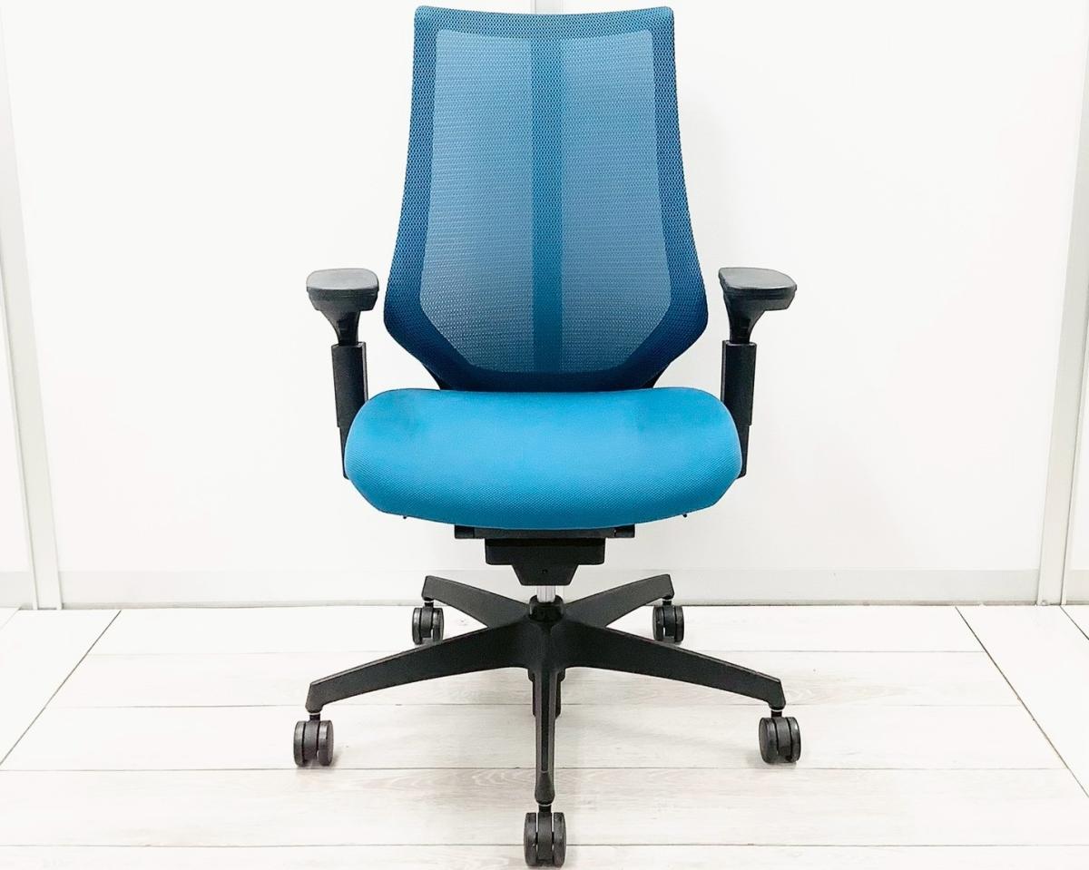 ■KOKUYO/コクヨ ■デュオラ(Duora)チェア ■プルシアンブルー×ホワイトシェル×ブラック脚 ■肘付き/可動肘 ■ハイバック ■背面/メッシュ 座面/布 ■コートハンガー付き ■オススメ/人気/定番商品 【弊社使用欄:A01040309 K】【ID】