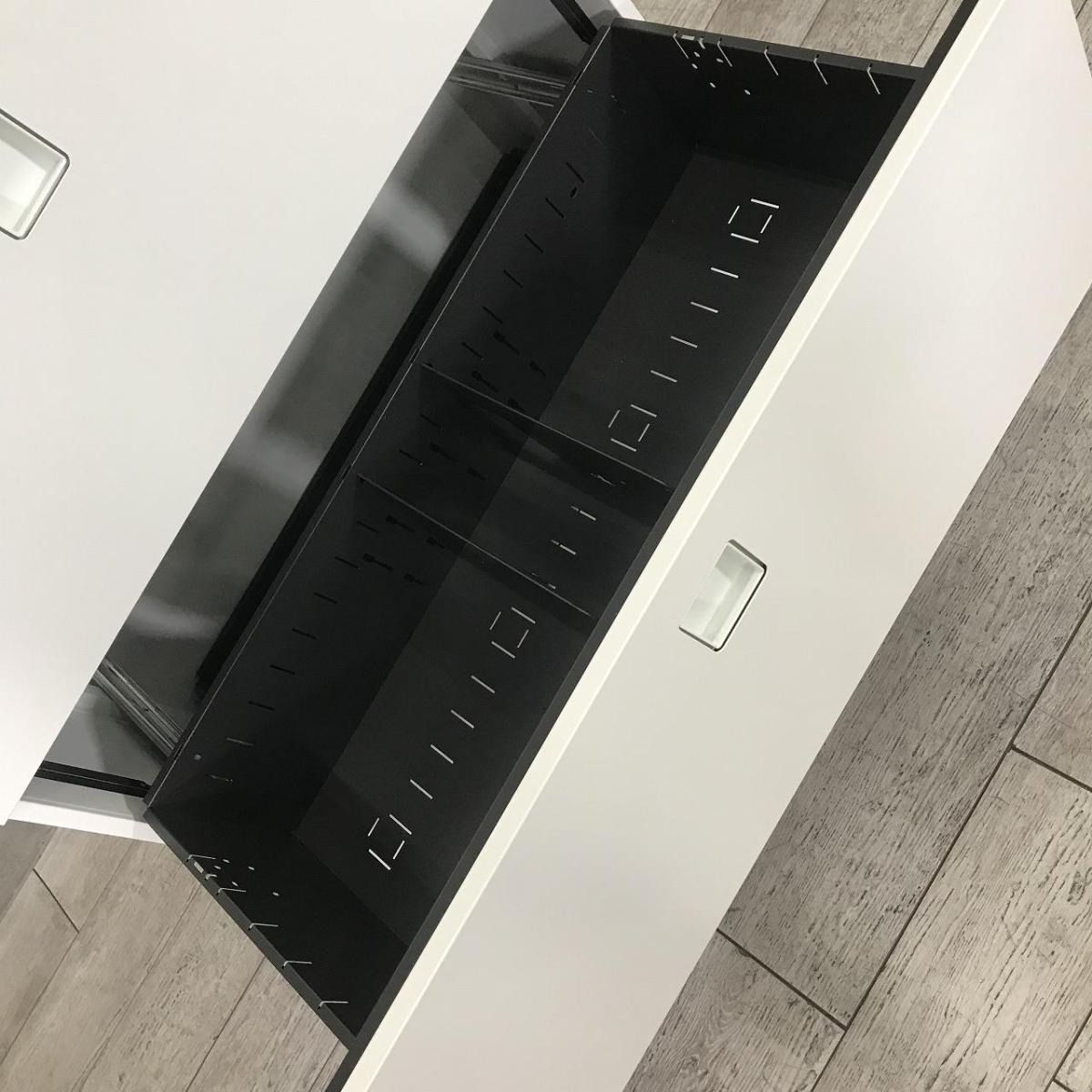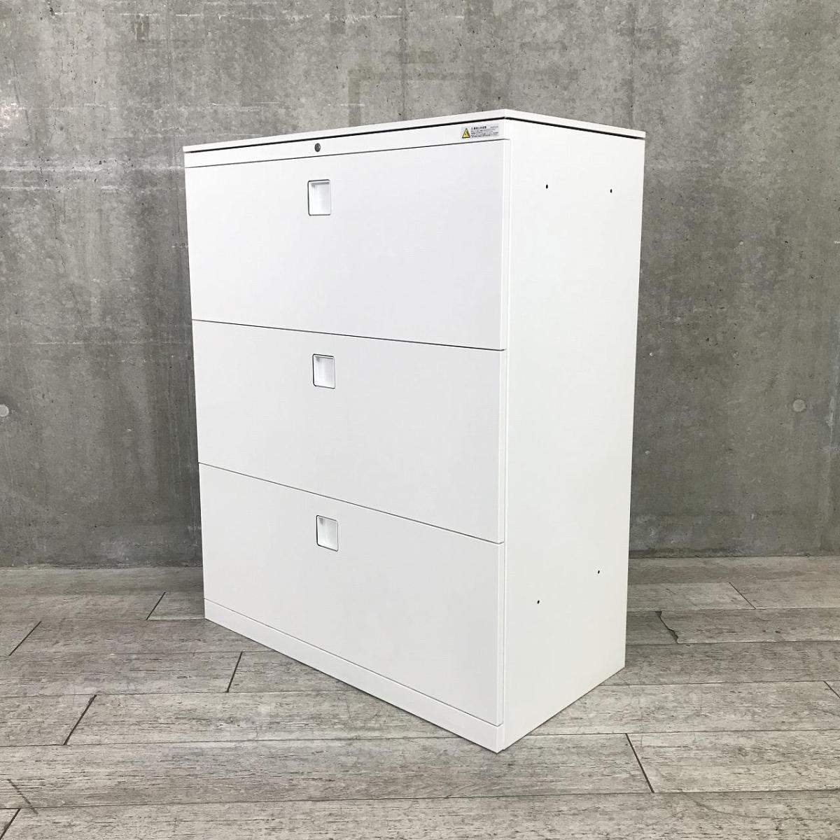 ■オカムラ(okamura)製 レクトラインシリーズ 3段ラテラル ローキャビネット ■天板・ベース付 ■シリンダー錠 ■ホワイト ■収納力抜群【弊社使用欄:A01037187】【SN】