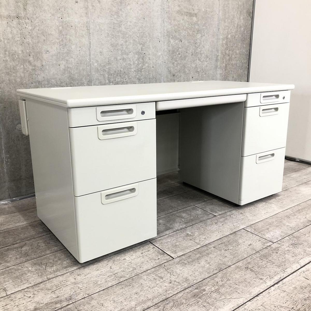 【中古】 LA LA-NT147 LGY プラス/PLUS 両袖机 560736