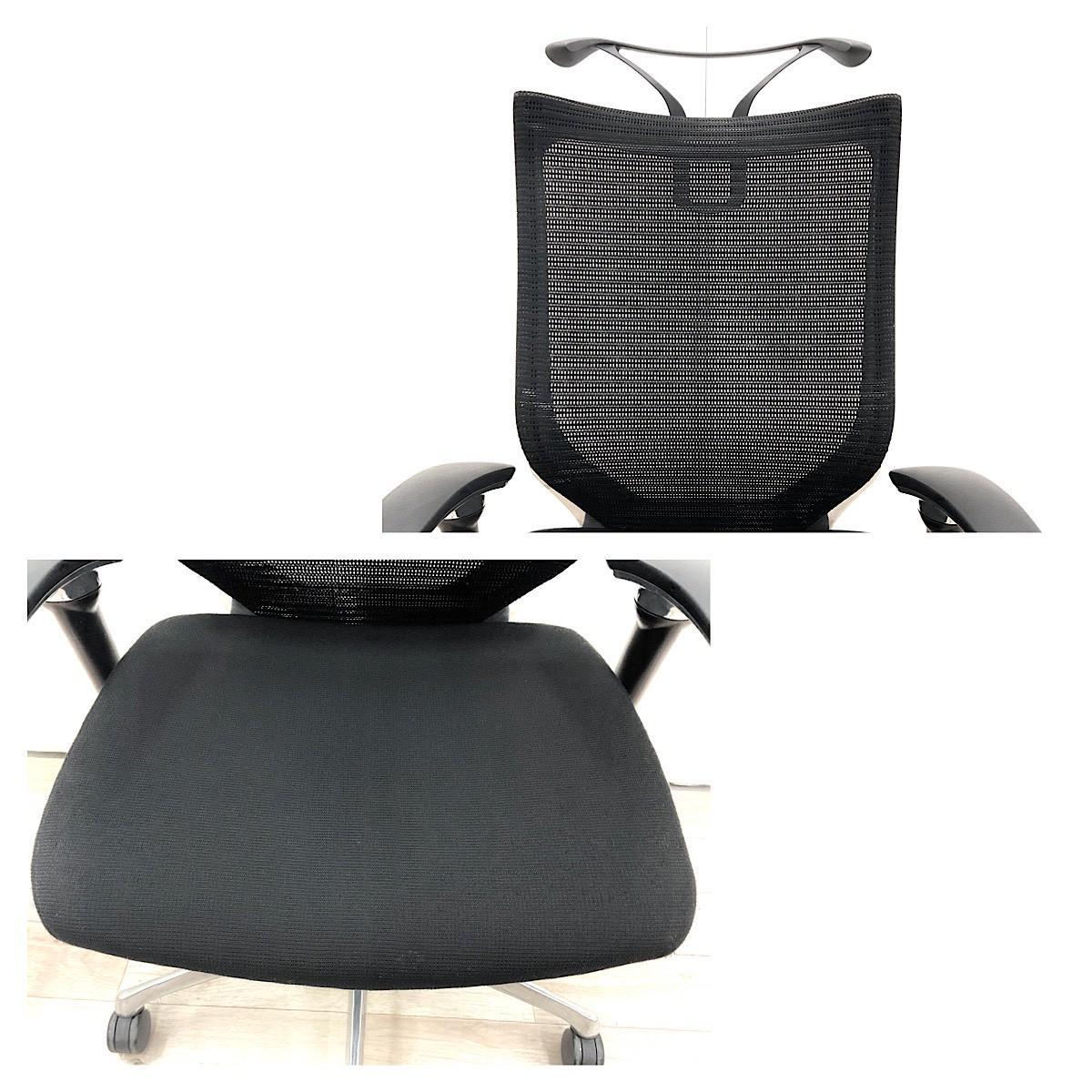 【座面クッション】スタンダードメッシュ ブラックフレーム アームレスト付き ヘッド付きオススメ(おすすめ) 大人気 ・Okamura/オカムラ ・Baron/バロン ※横浜本店撮影画像※
