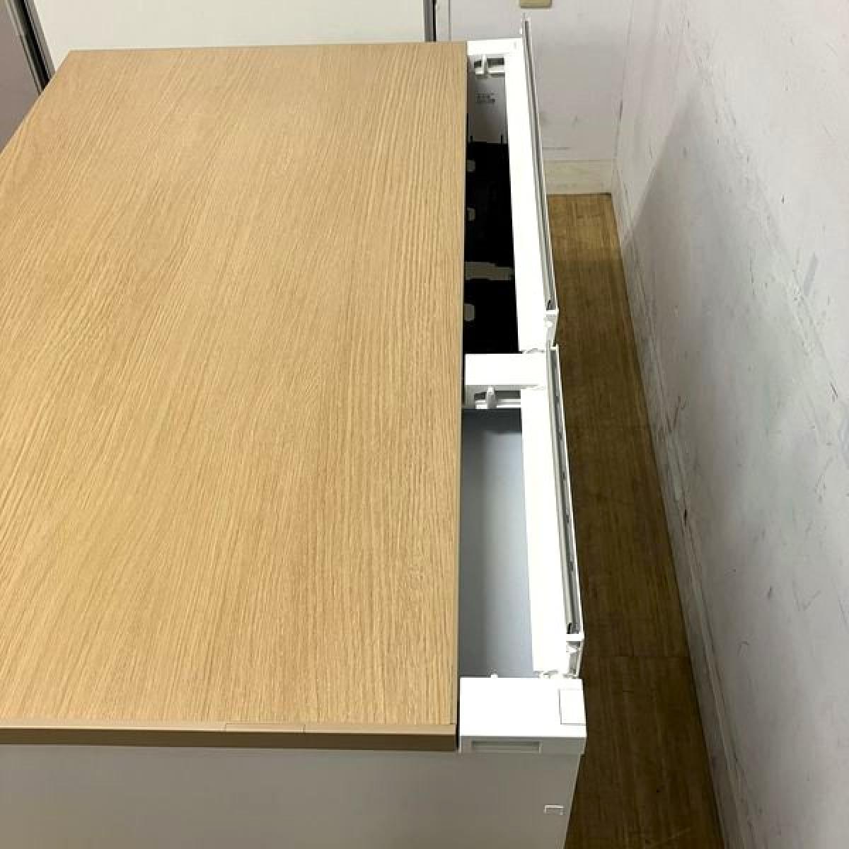 【幅1100mmが使いやすい!ナチュラル色天板が人気!】■コクヨ(KOKUYO)製 アイエス(iS)シリーズ 片袖机 W1100mm ■天板:木目ナチュラル(明るめ) ■シリンダー錠 【ちょいと明るめカラー!】