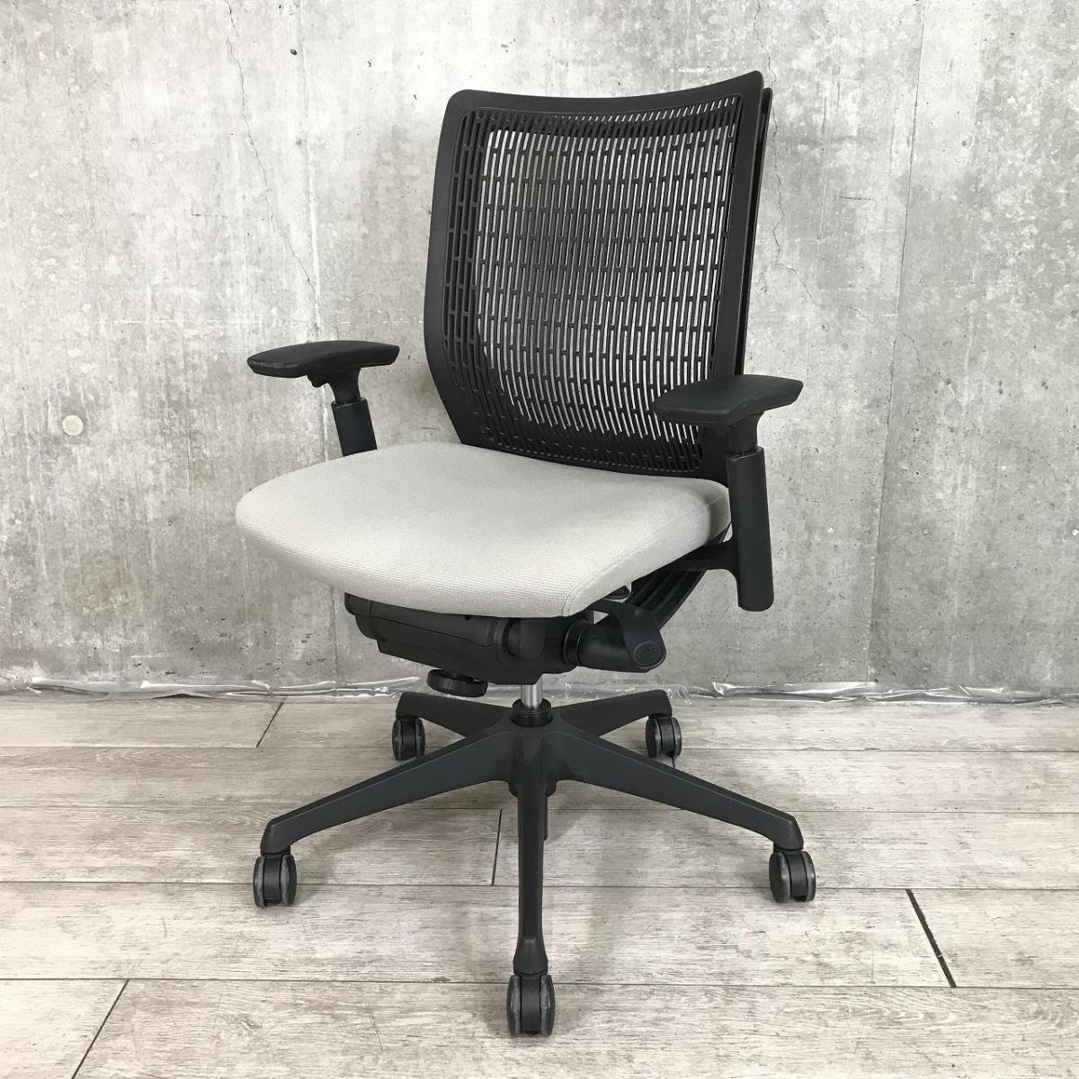 【人間工学に基づいた心地よい座り心地!】■オカムラ(okamura)製 ヴィスコンテ(Visconte)チェア 肘付き ローバック ■背面プレーンタイプ ■可動肘 ■座面ライトグレー ×背面ブラックサーキュラーバリューCO2削減量の算出について