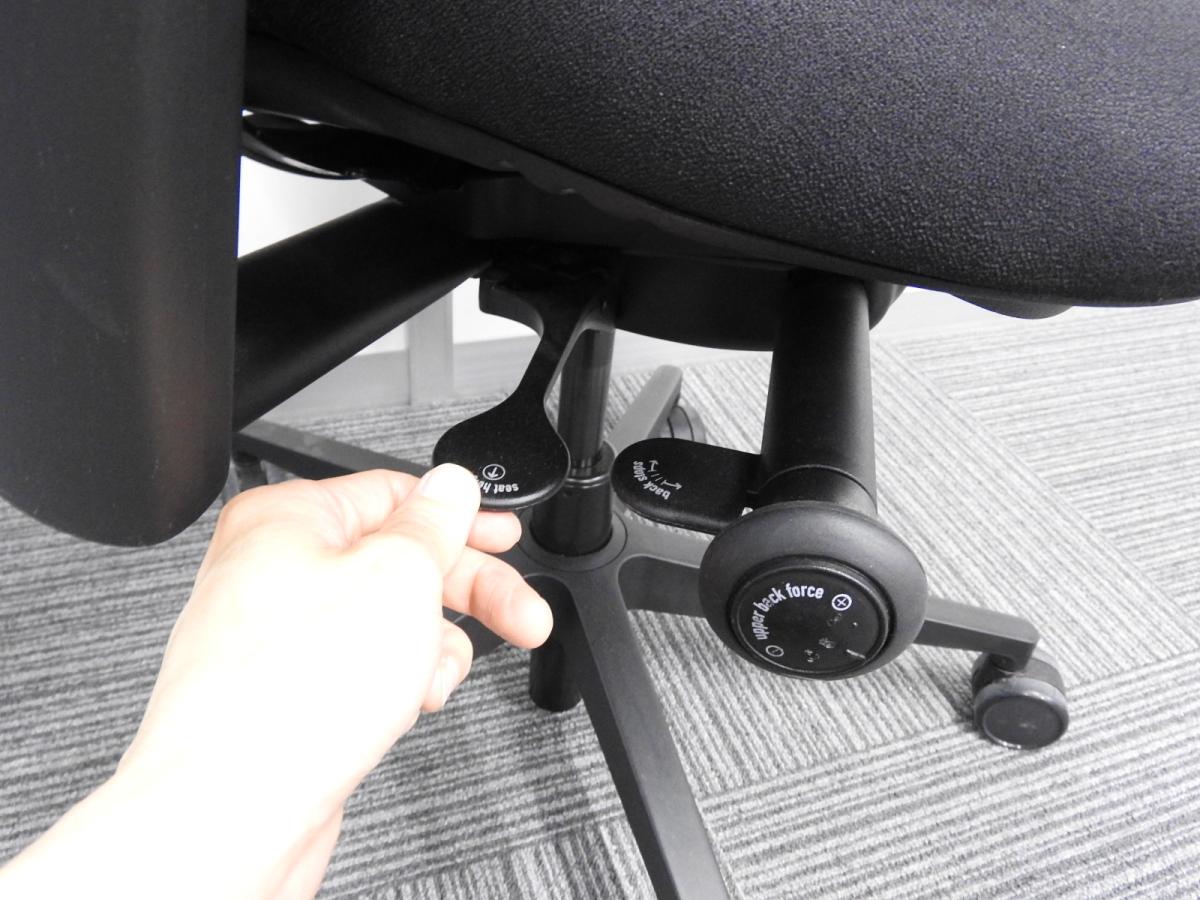 - 前後75㎜で調節可能。様々な体格にフィットします。座前縁部チルト機構も搭載で、前傾姿勢時の大腿部への負担も軽減します。