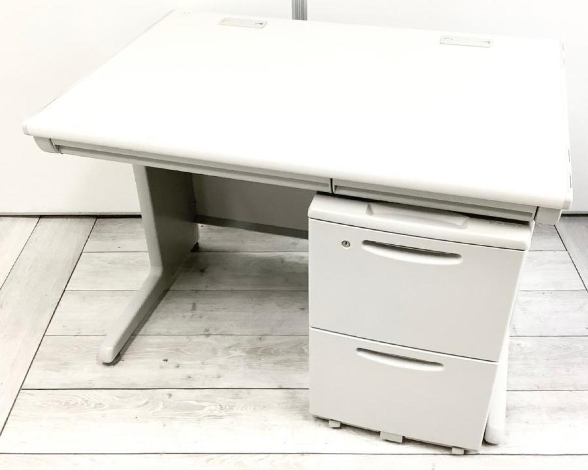 【コンパクトでスタンダード!使いやすい引き出し付きデスク!】■オカムラ(okamura)製 SD-Vシリーズ 平机+ワゴンセット(片袖机) 引き出し付き W1000㎜ ■ライトグレー ※ワゴンは在庫状況によって変動致します。- つくば店
