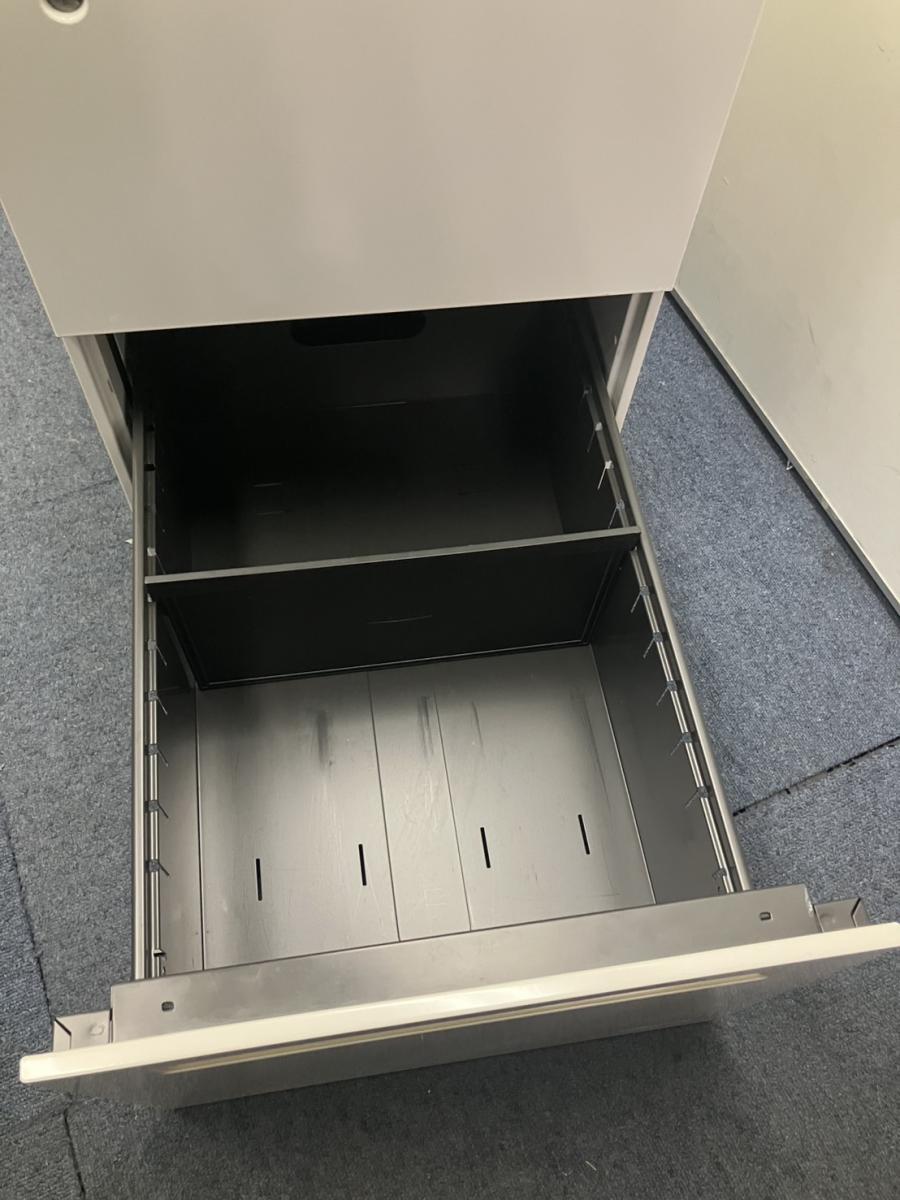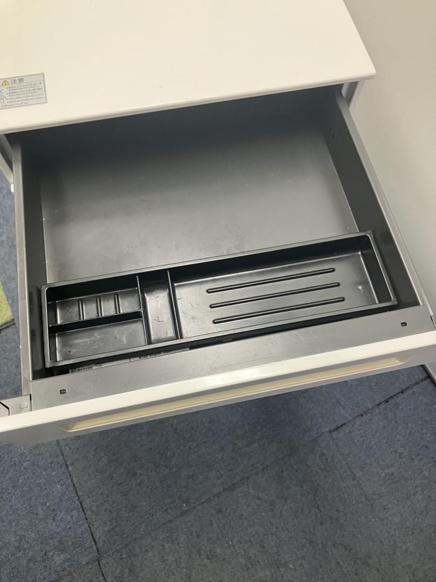 【訳アリ品】【フリーアドレスの必須品!収納とワークスペースの拡張にオススメ!】■オカムラ(okamura)製 アドバンスシリーズ 3段ワゴン フリアド用 ■高さ:680mm ■色:ホワイト ■シリンダー錠 ■取っ手に日焼けがあります!- 名古屋本店