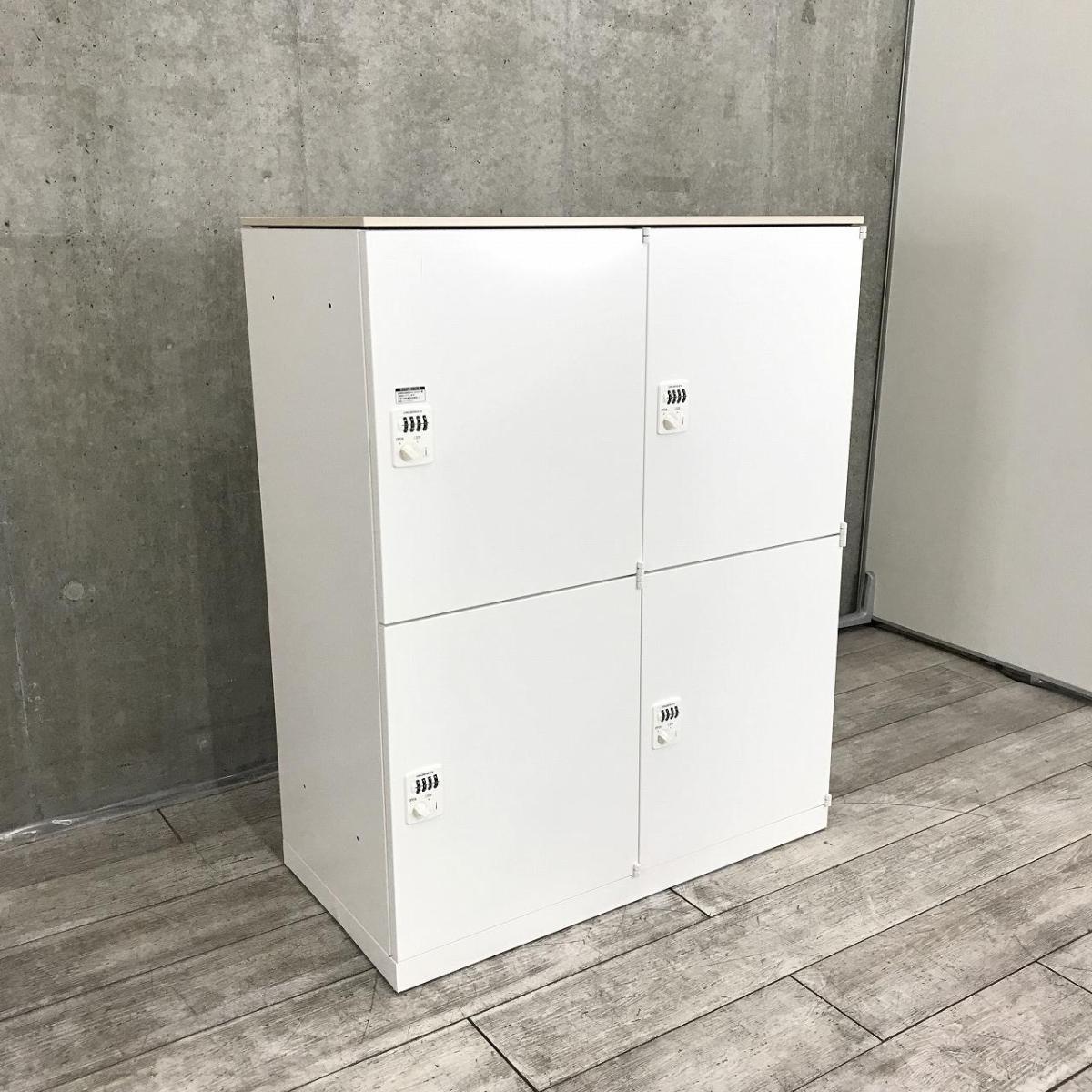 【関東倉庫在庫品】【ダイヤル錠のため鍵紛失の心配なし!】■オカムラ製 レクトライン 4人用パーソナルロッカー※天板付き ■ホワイト 天板:ナチュラル【弊社使用欄:A01021542】【ECBMC】- 渋谷サテライト