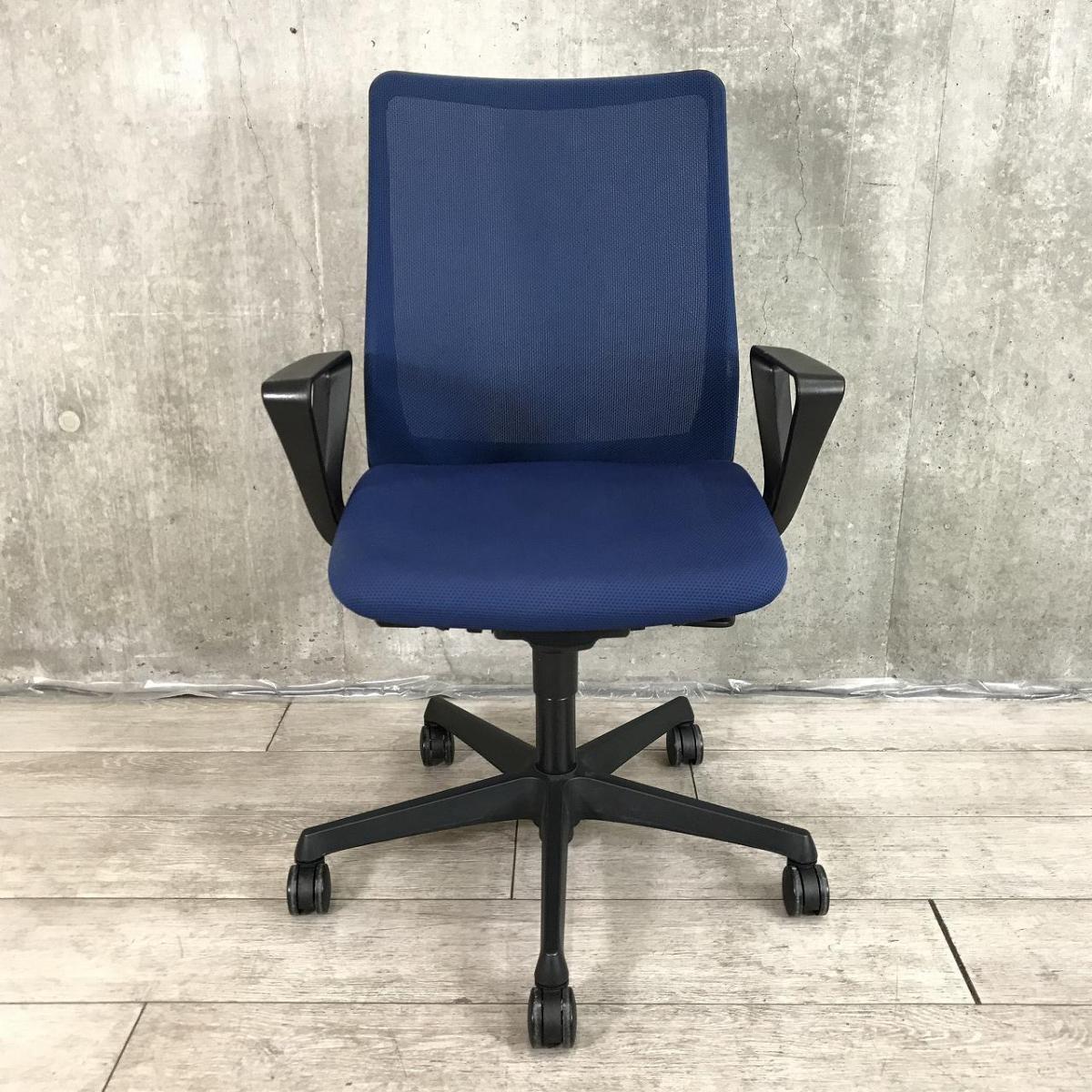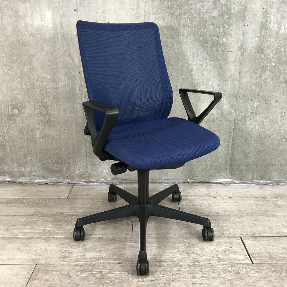 【長時間作業も快適フィット!腰まわりのホールド感が心地よい!】■オカムラ フルーエントチェア 肘付 ブルー ※背面擦れあり ■あのシルフィの座り心地を低コストで再現!【Okamura Fluent】★- 川崎店