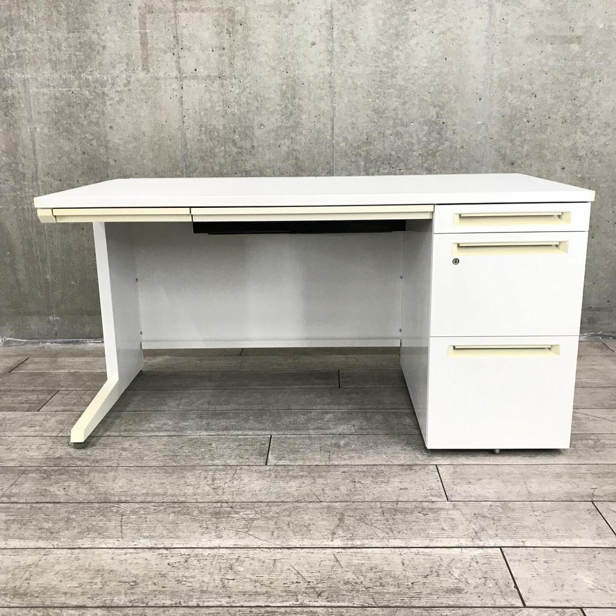 【ワークスペース広々!広々幅1400mmの人気片袖デスク!】■オカムラ(okamura)製 アドバンス (ADVANCE)シリーズ 片袖机 W1400×D700mm ■シリンダー錠 ■ネオホワイト ※日焼けあり- 日本橋店