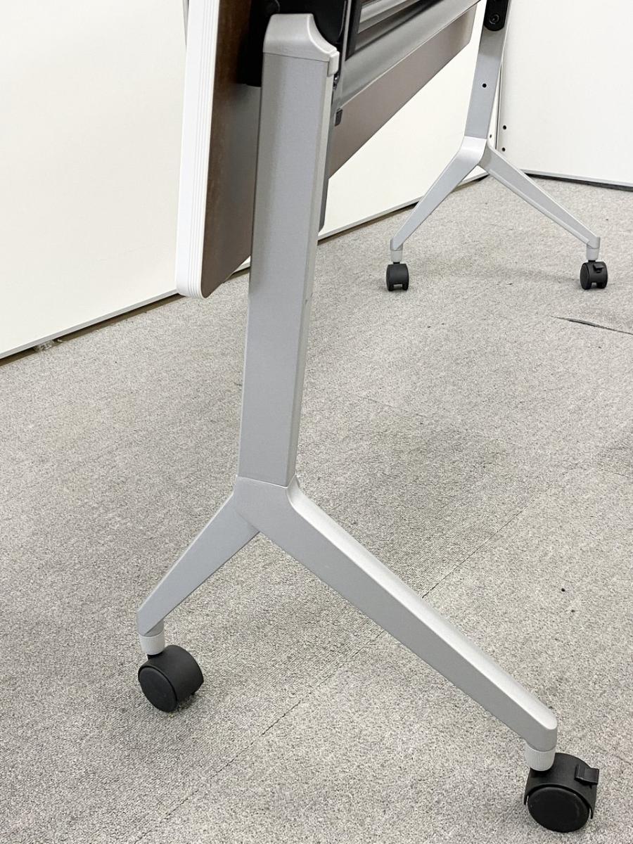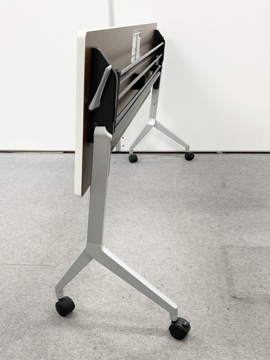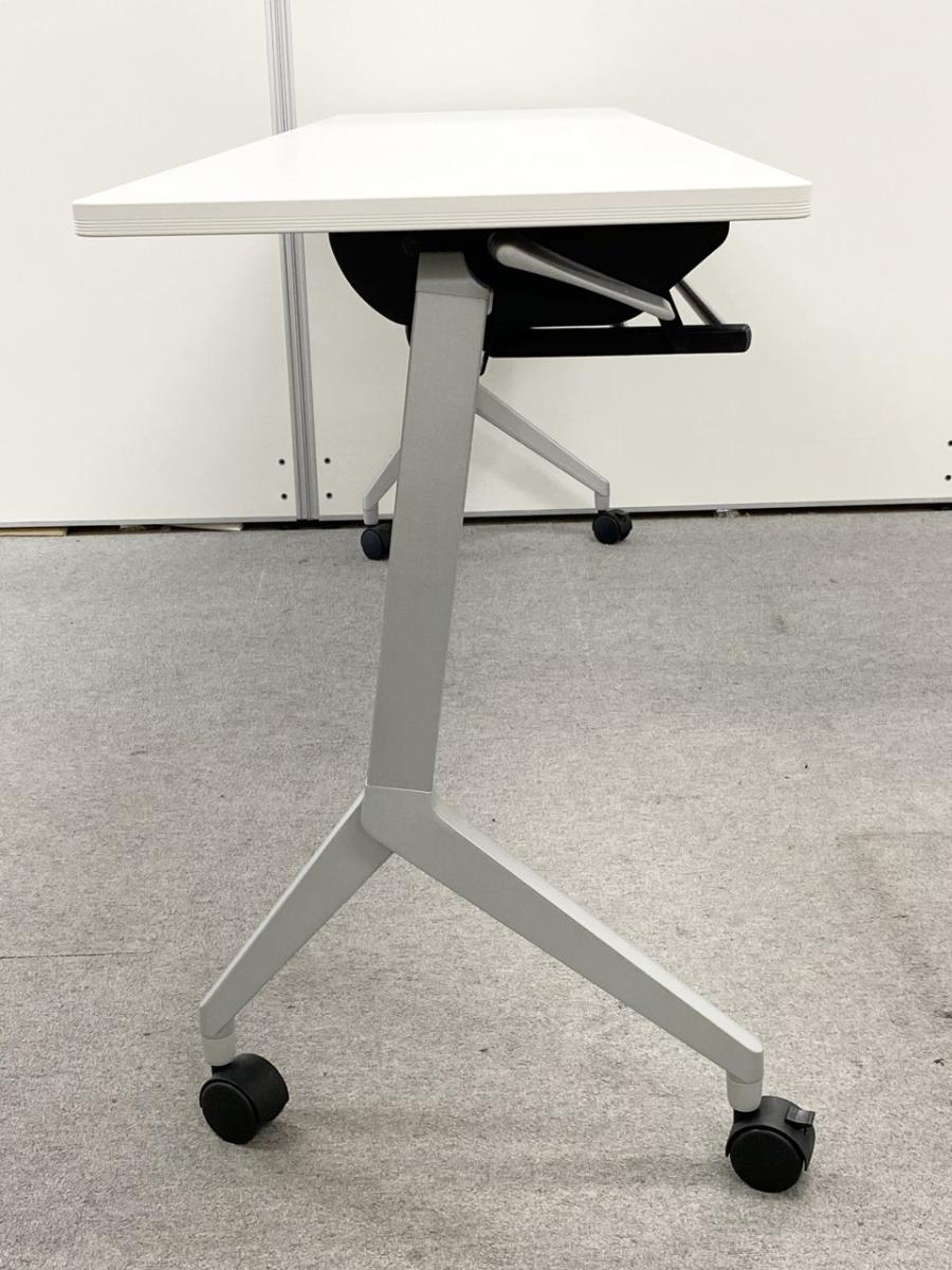 【折りたたみ収納が秀逸!スタイリッシュなデザインで高品質!】■コクヨ(KOKUYO)製 リーフラインシリーズ サイドスタックテーブル フラップタイプ W1200×D450㎜ ■キャスター・幕板付 ■ホワイト