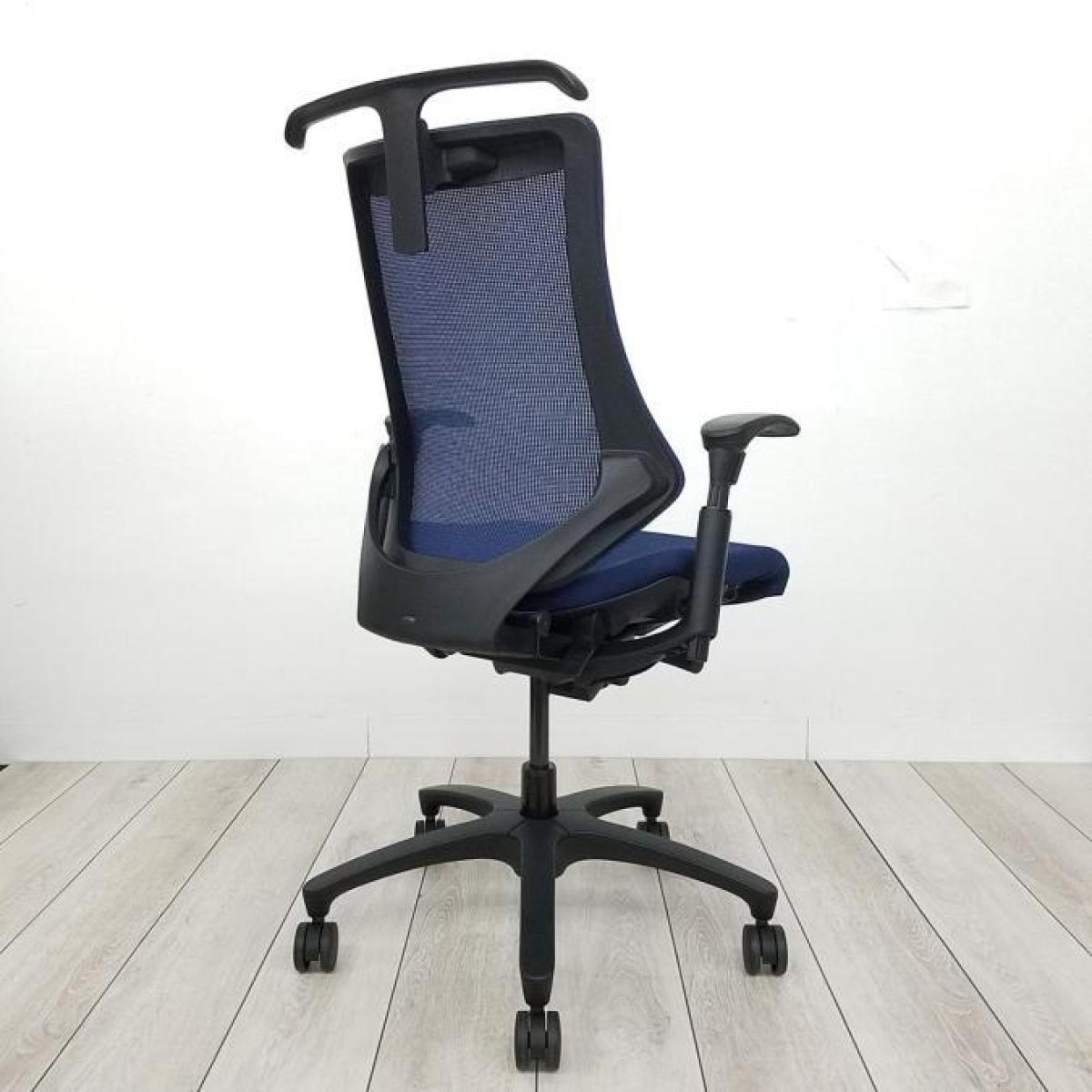 【姿勢の変化にフレキシブルに対応!スタイリッシュで座り心地も抜群な高機能チェア!】■イトーキ(ITOKI)製 エフ(f)チェア 肘付き ハイバック 背面メッシュ ■可動肘 ■ネイビーブルー ×ブラックシェル【2510】弊社使用欄【A01040263】