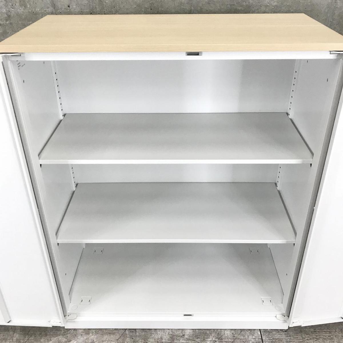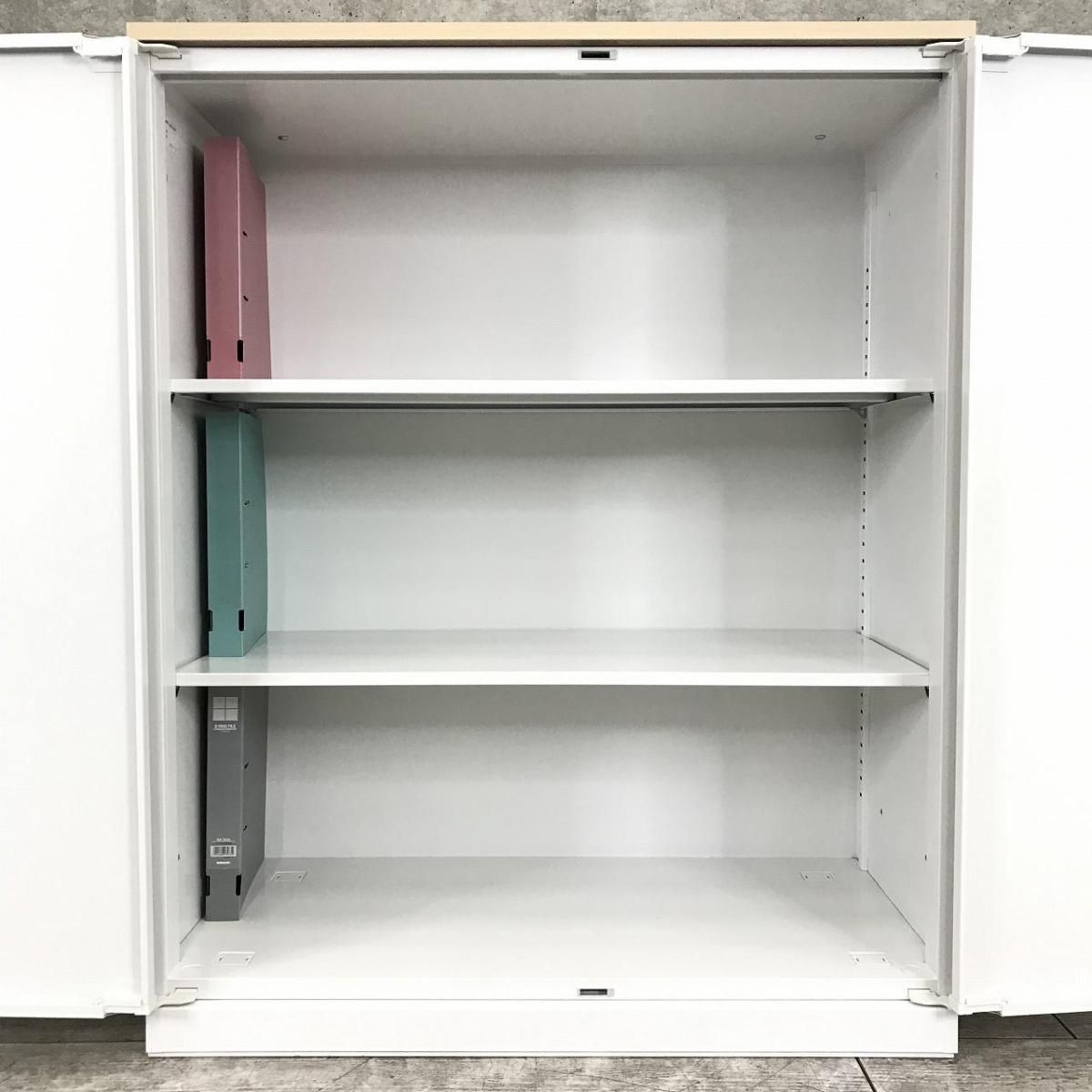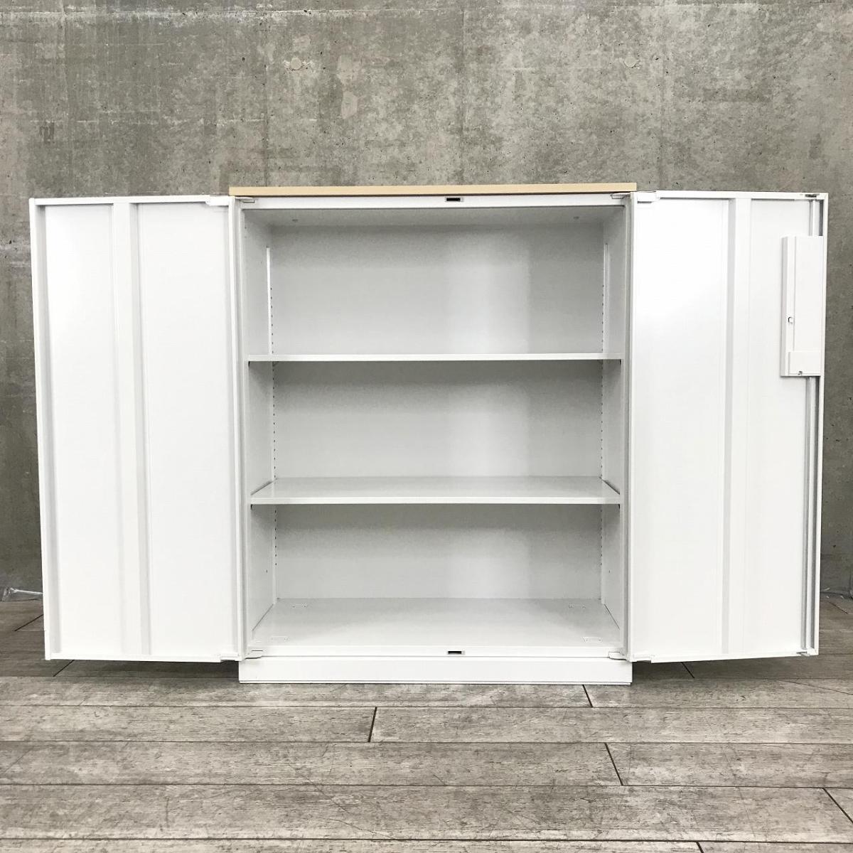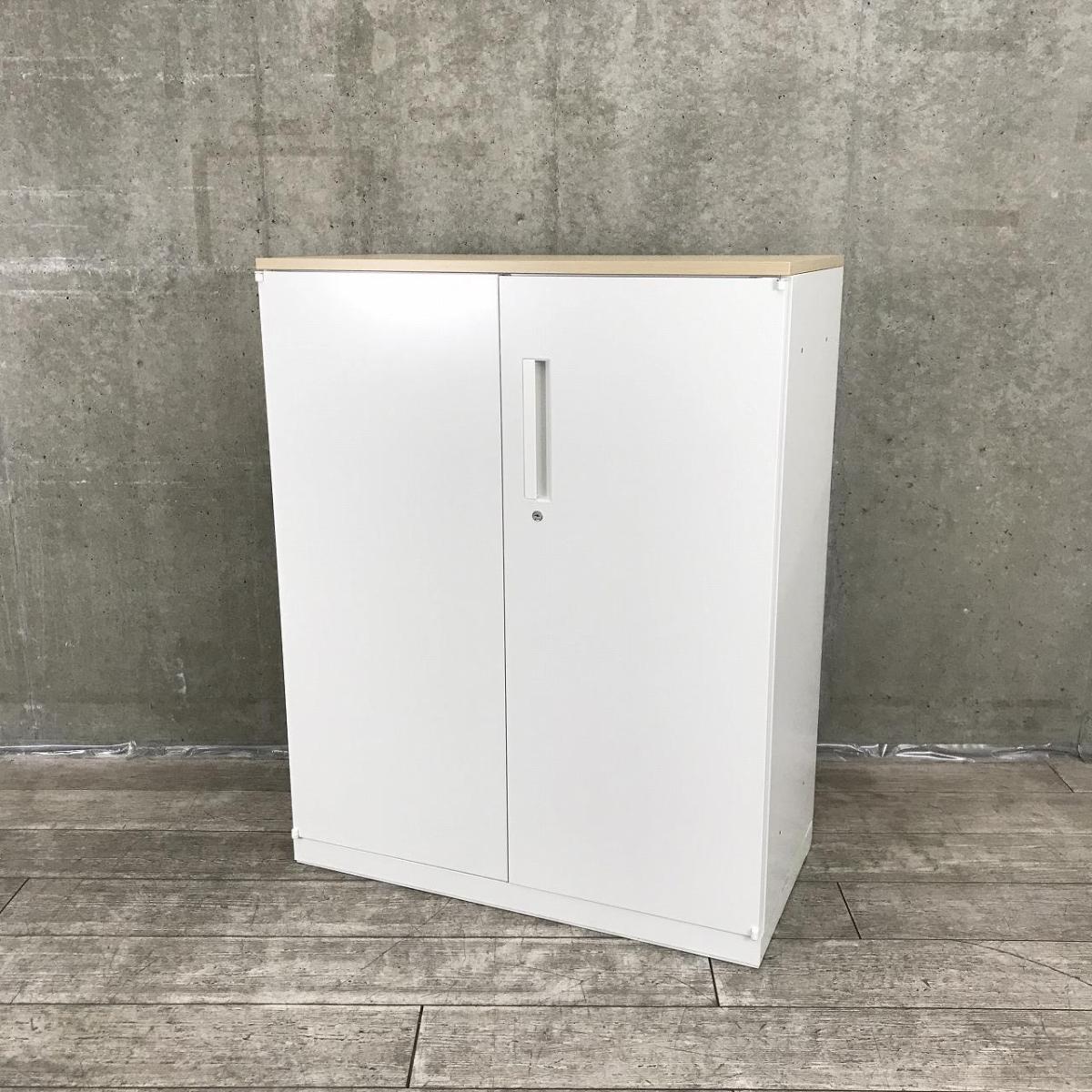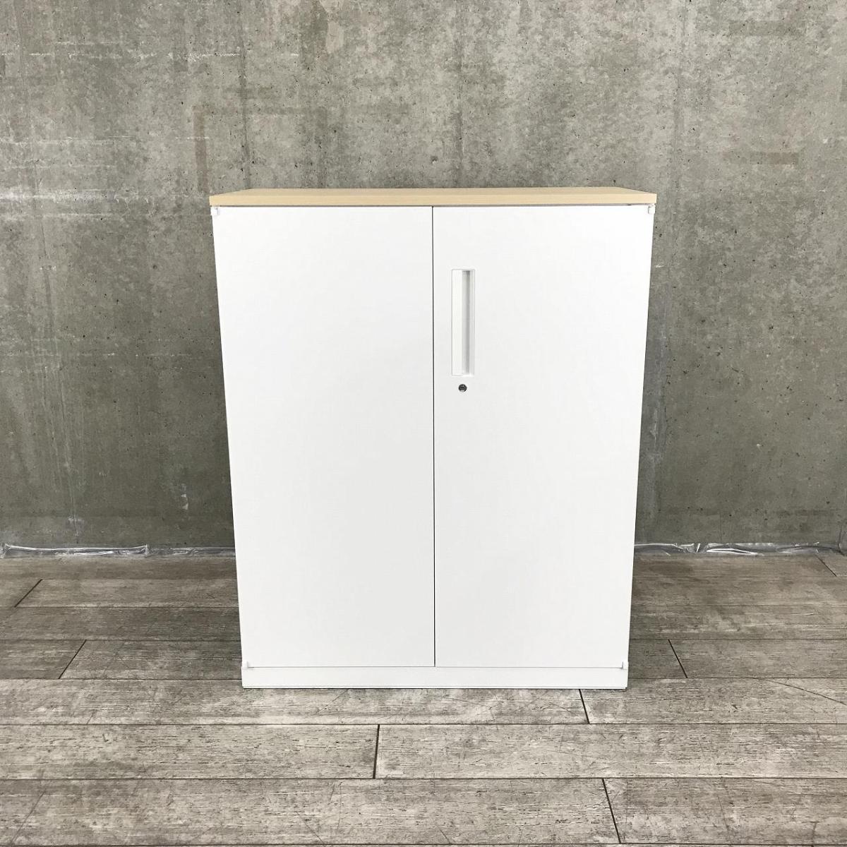 【在庫入替セール品!】人気の観音開きタイプ!取っ手が大きく使い勝手のよい定番キャビネット! ■内田洋行/HSシリーズ/ホワイト 天板ナチュラル