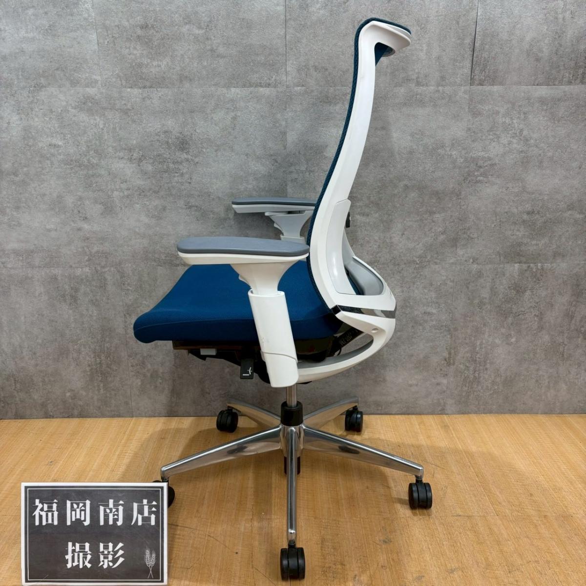 【前傾から後傾まで様々な姿勢をサポート!ワンランク上の座り心地!】■コクヨ(KOKUYO)製 ベゼル(Bezel)チェア 肘付き ハイバック 背面メッシュ ■可動肘 ■プルシアンブルー×ホワイトシェル ■ハンガー付