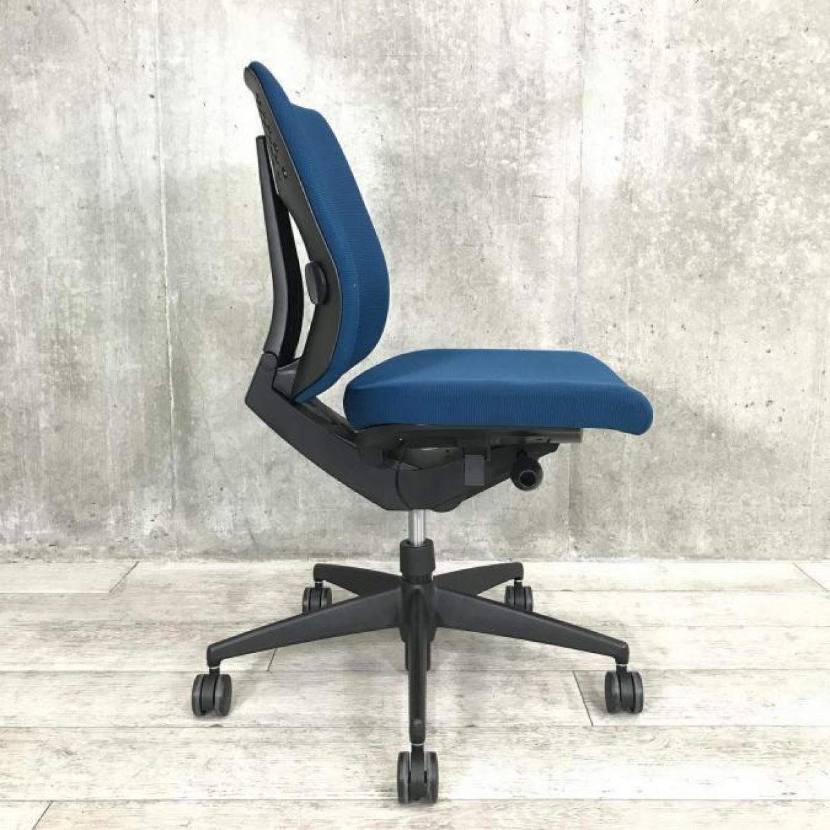 コクヨ ウィザード2 ローバック ロングセラーシリーズ プルシアンブルー×ブラックフレーム 肘無しモデル 定番の使いやすいチェア