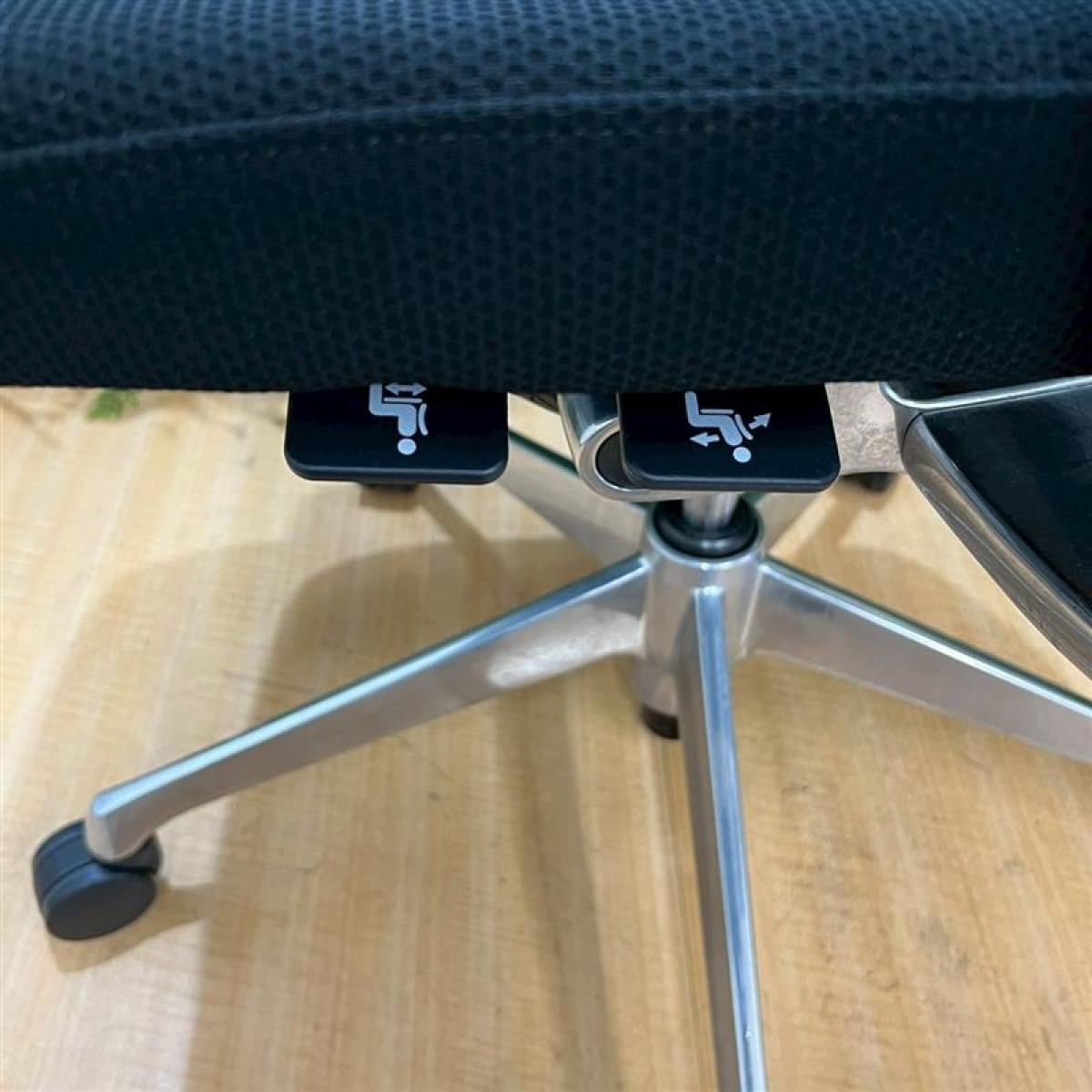 座面の高さや前後などの基本的な調整レバーが座面裏の前方に集約されており、姿勢を変えずに調節ができます。