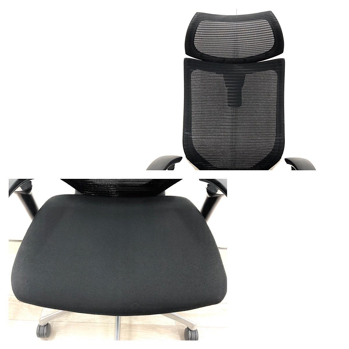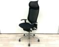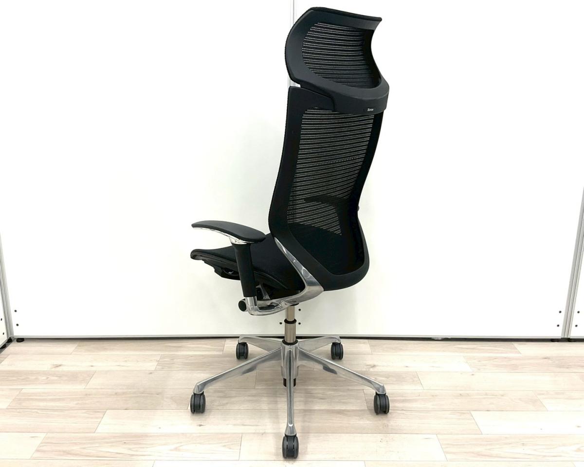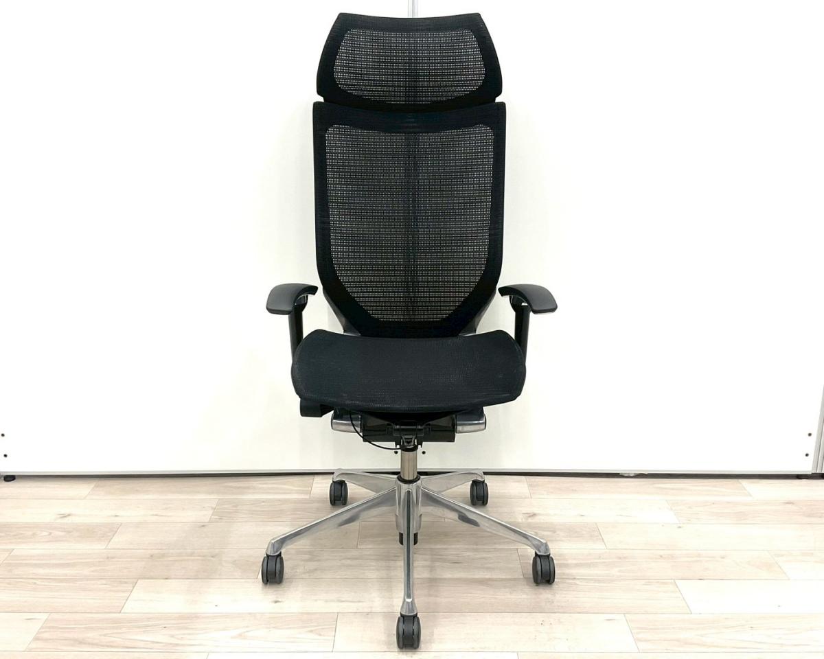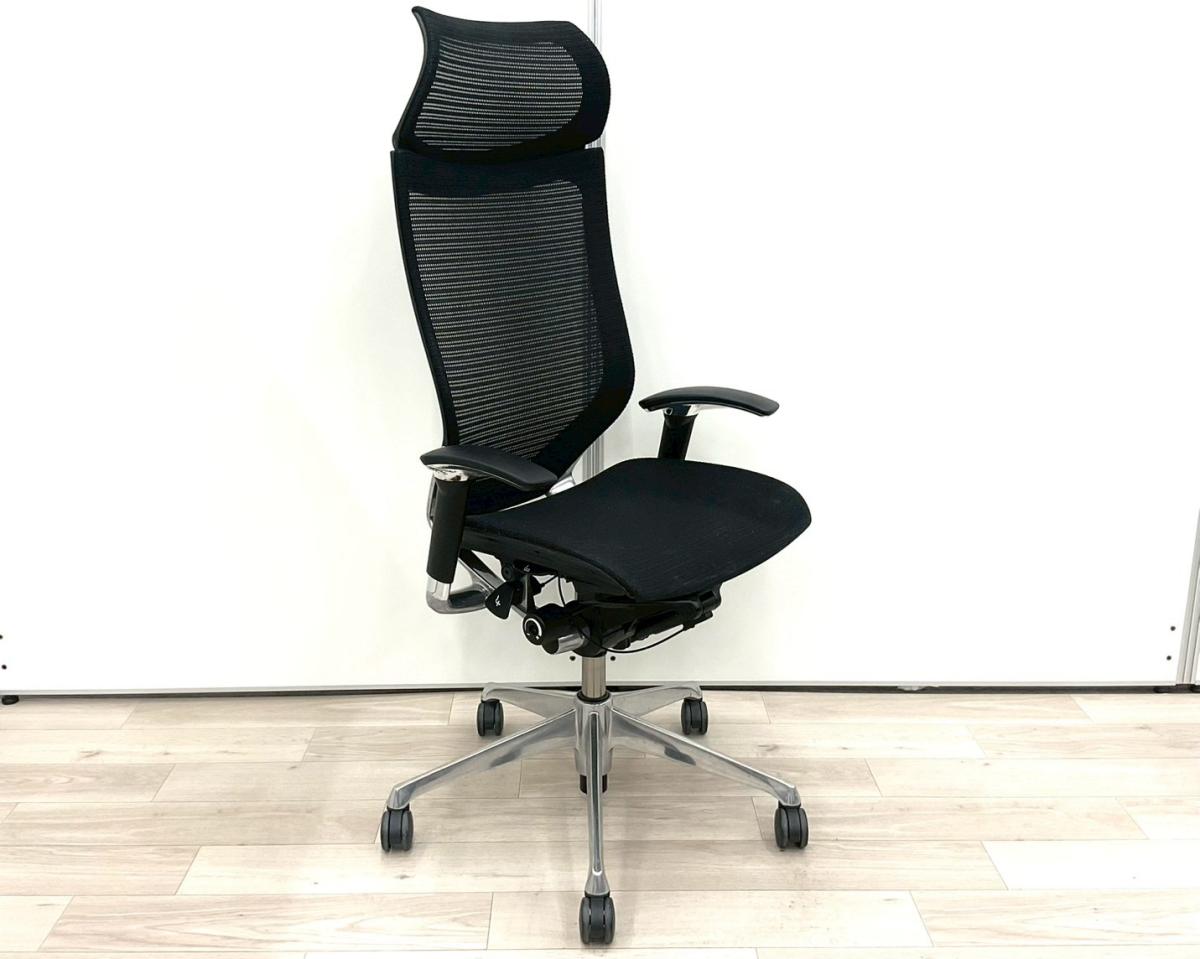 【オフィスの執務室、会議室におすすめ!】■オカムラ(okamura)製 バロン(Baron)チェア 肘付き ハイバック ■背・座面メッシュ ■可動肘 ■ヘッドレスト付き ■ブラック【硬めの座面が大人気!国産メッシュチェアの代表格!】