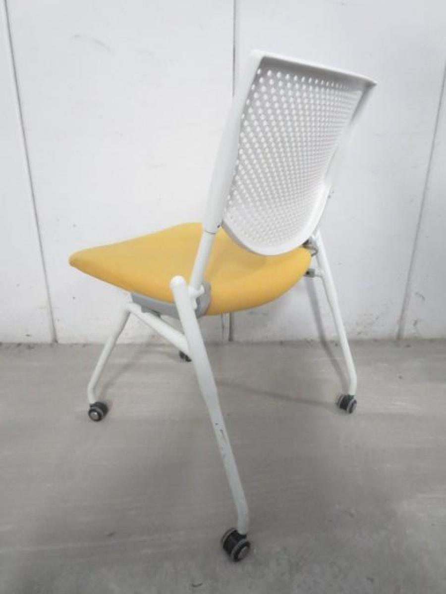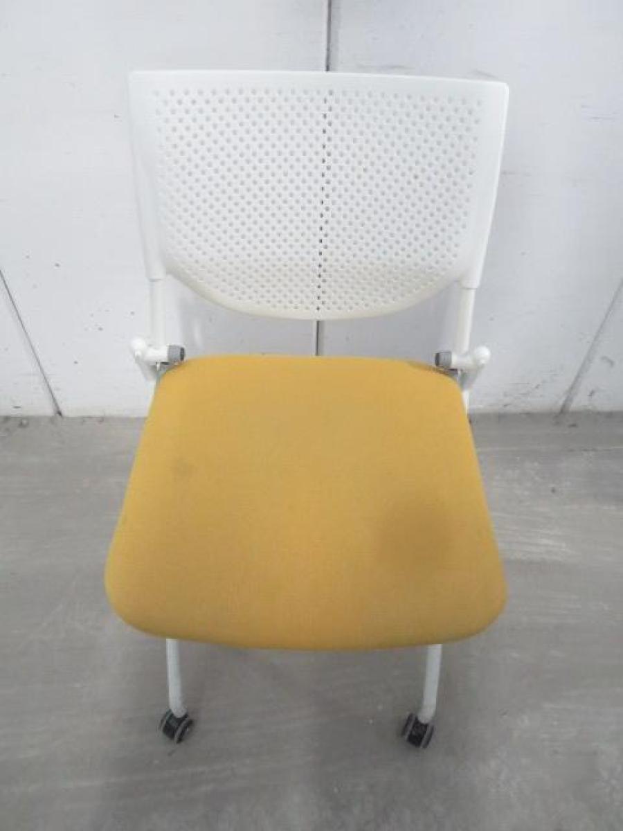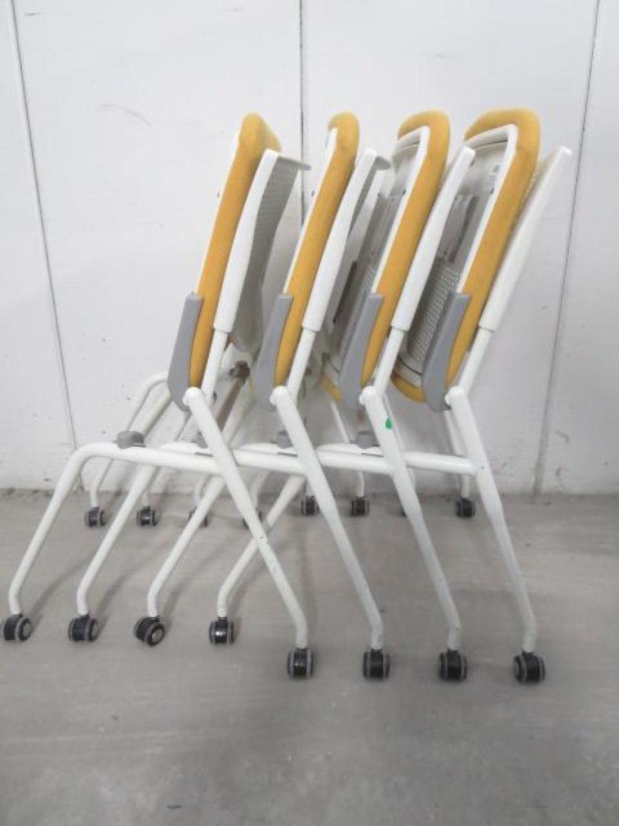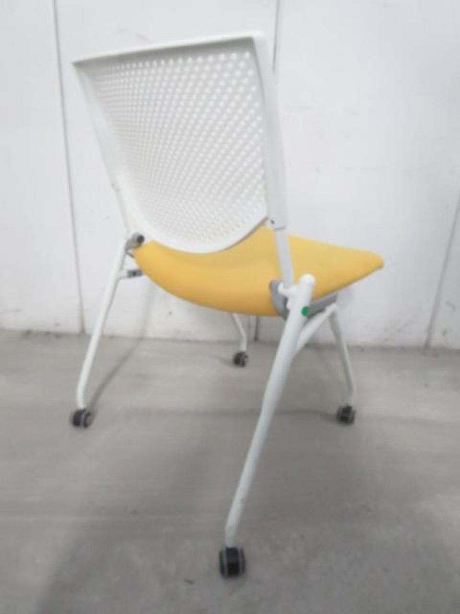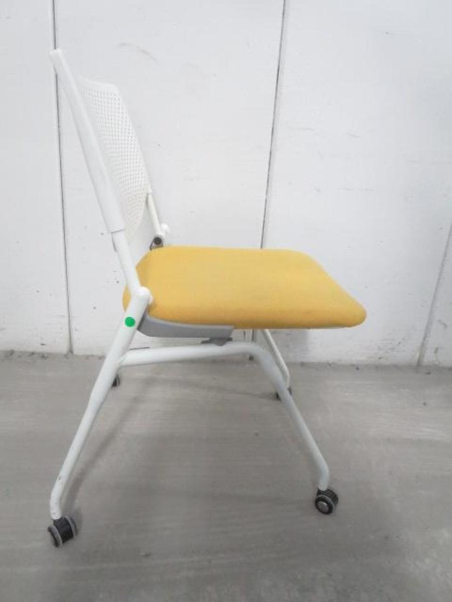 【在庫入替セール品!】【座を跳ね上げ省スペースで収納可能!】■オカムラ プロスタックシリーズ ネスティングチェア 座イエロー ■背面樹脂メッシュ ホワイトフレーム ミーティングチェア- 川崎店
