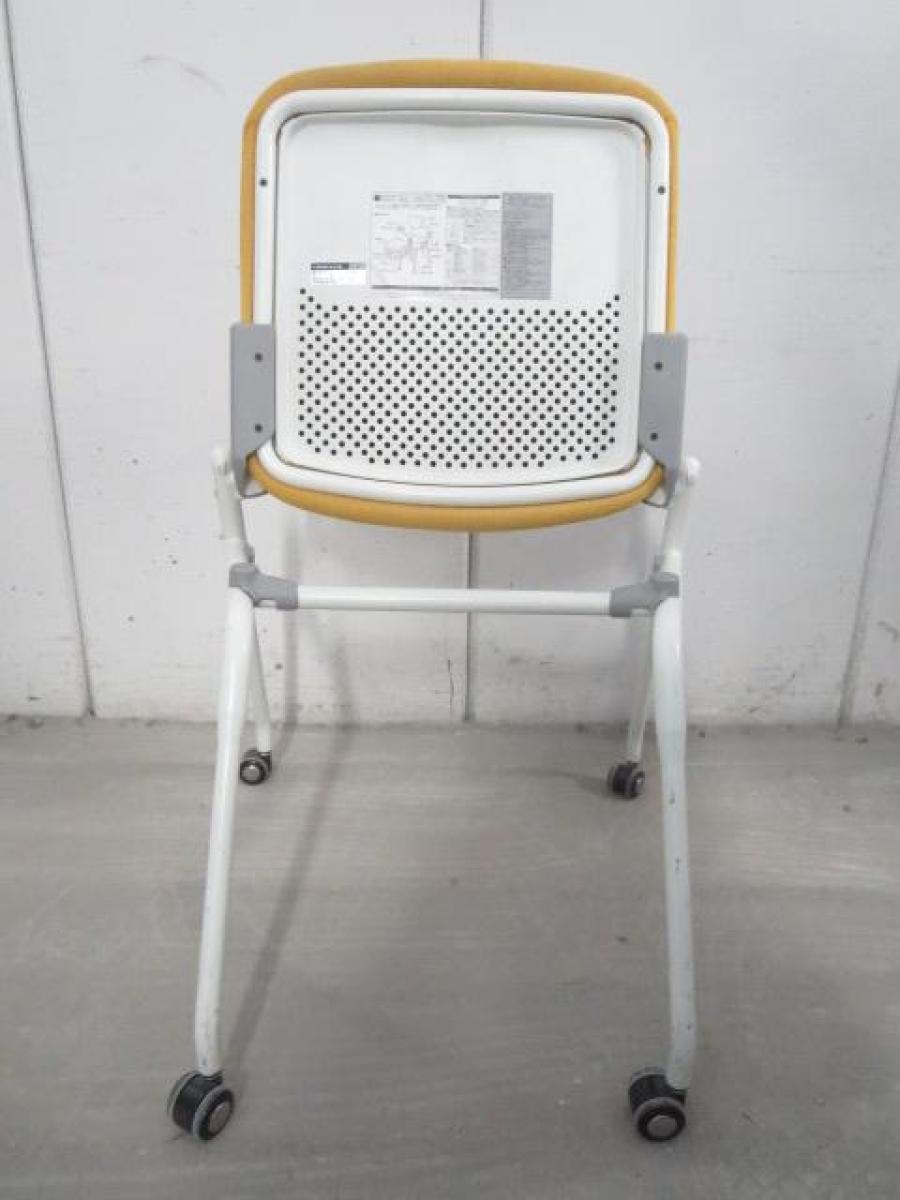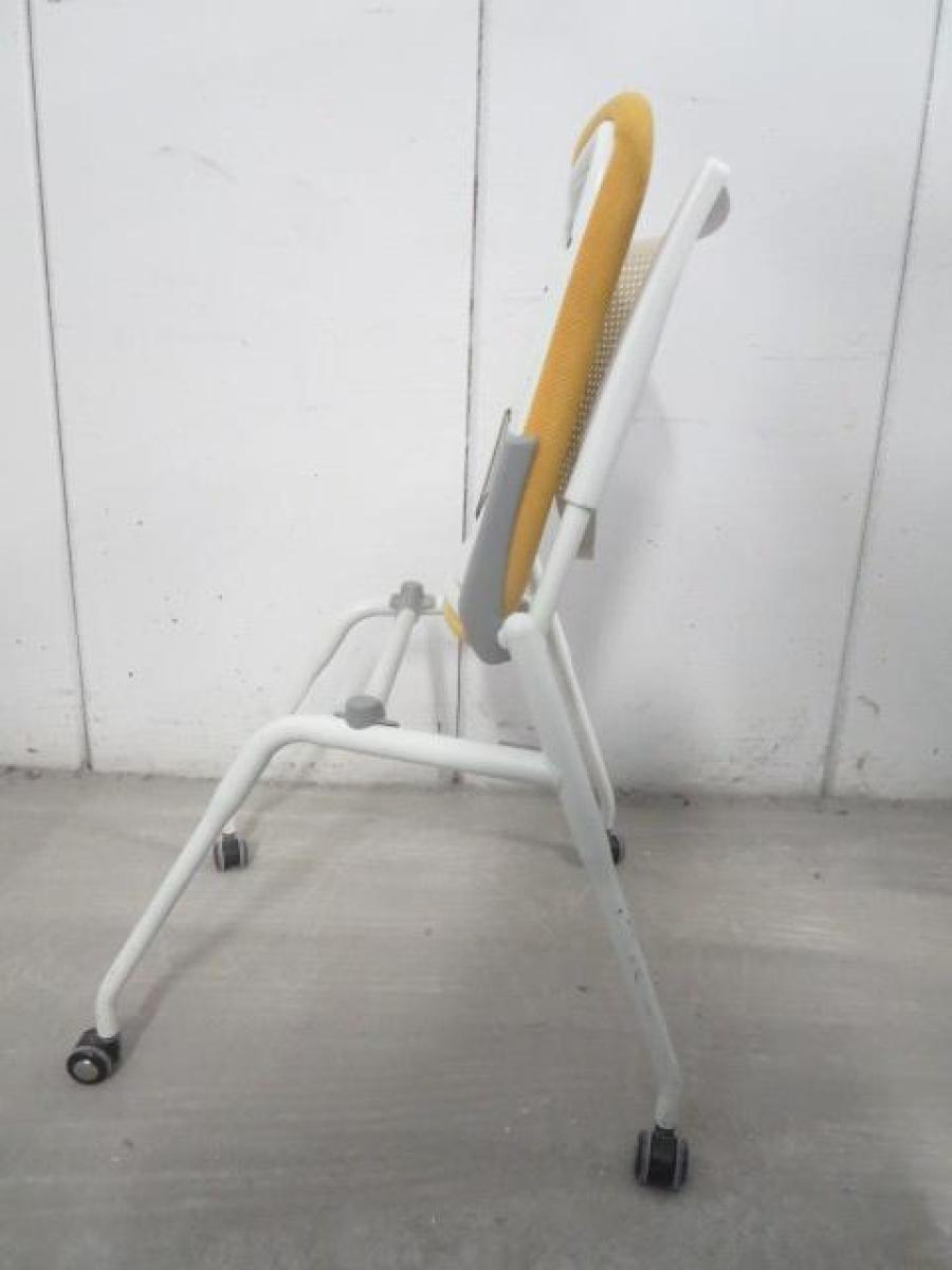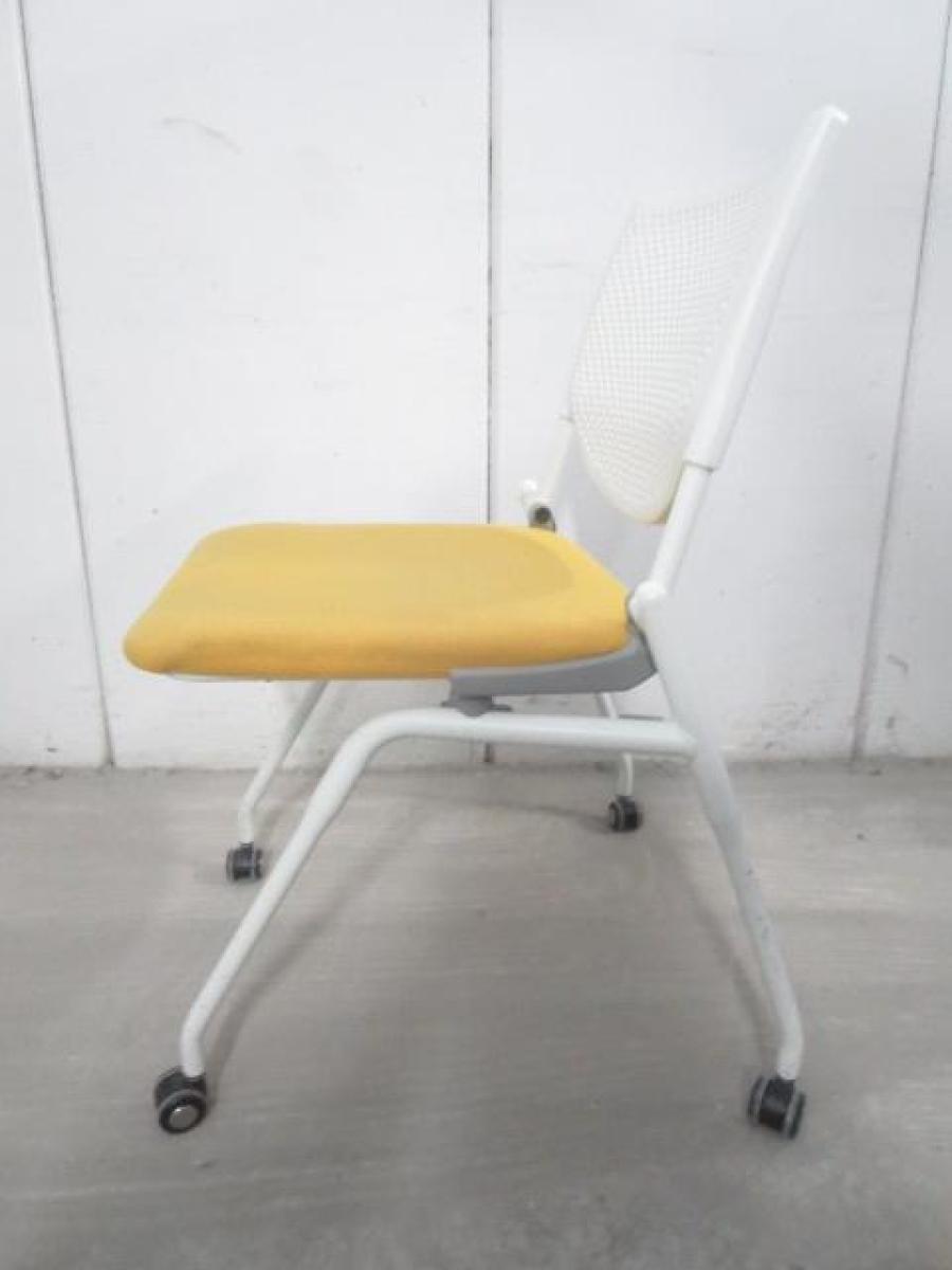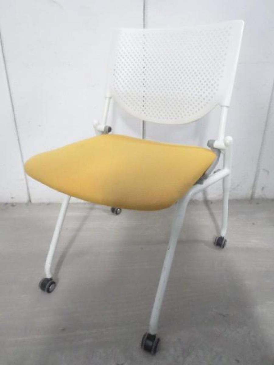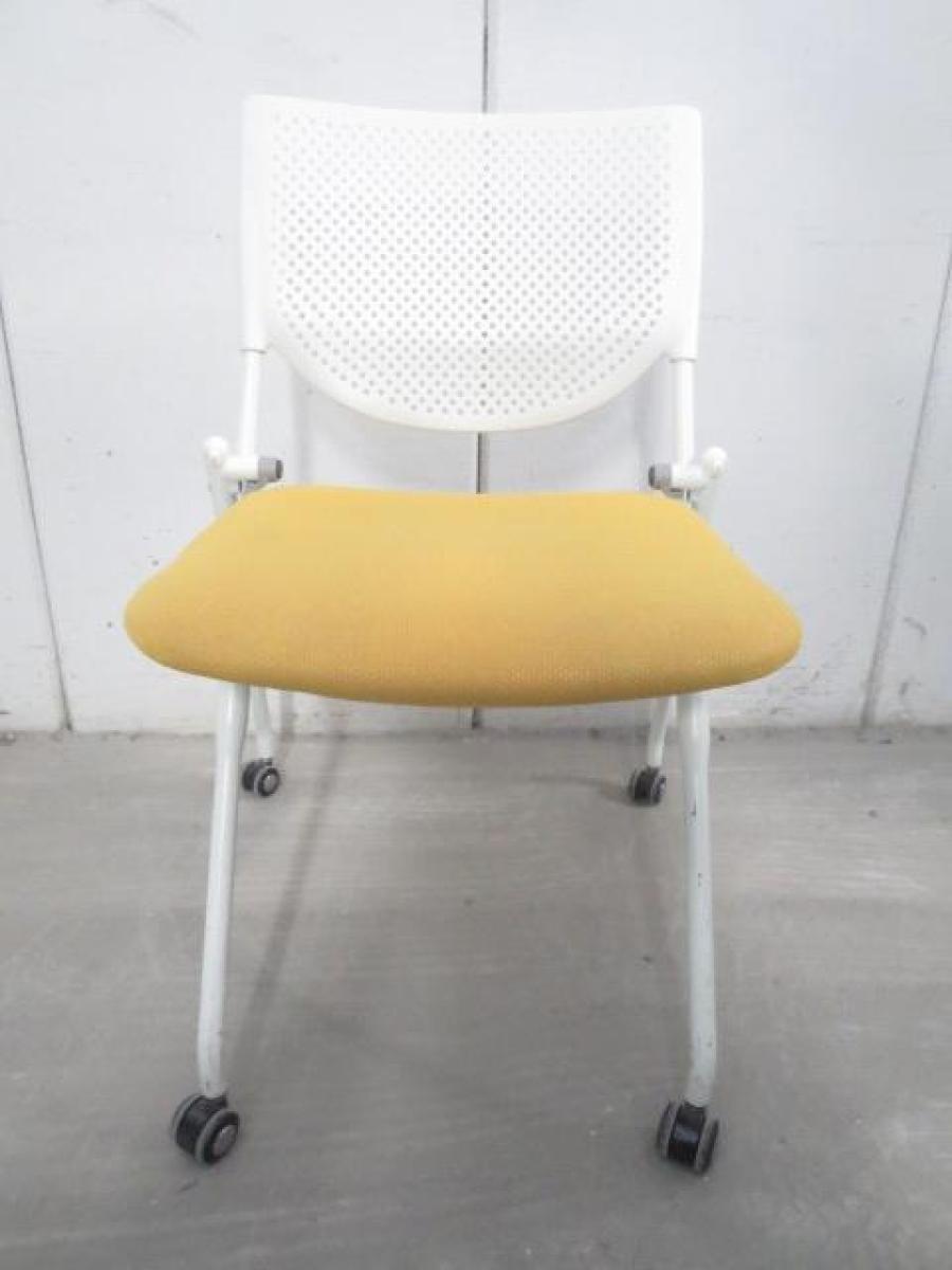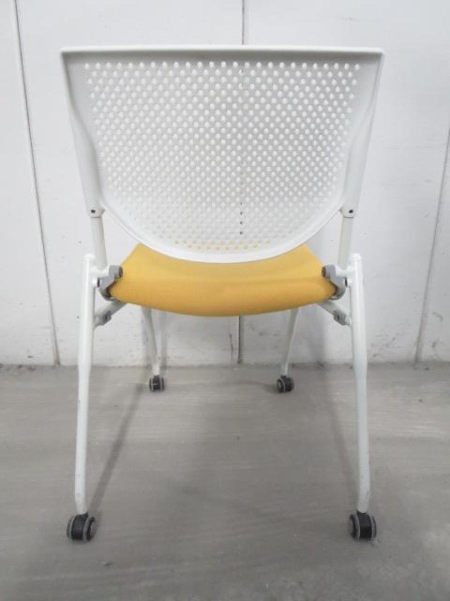 【在庫入替セール品!】【座を跳ね上げ省スペースで収納可能!】■オカムラ プロスタックシリーズ ネスティングチェア 座イエロー ■背面樹脂メッシュ ホワイトフレーム ミーティングチェア- 川崎店