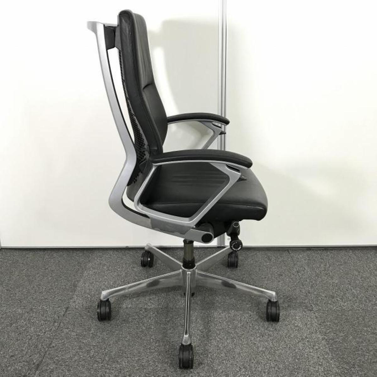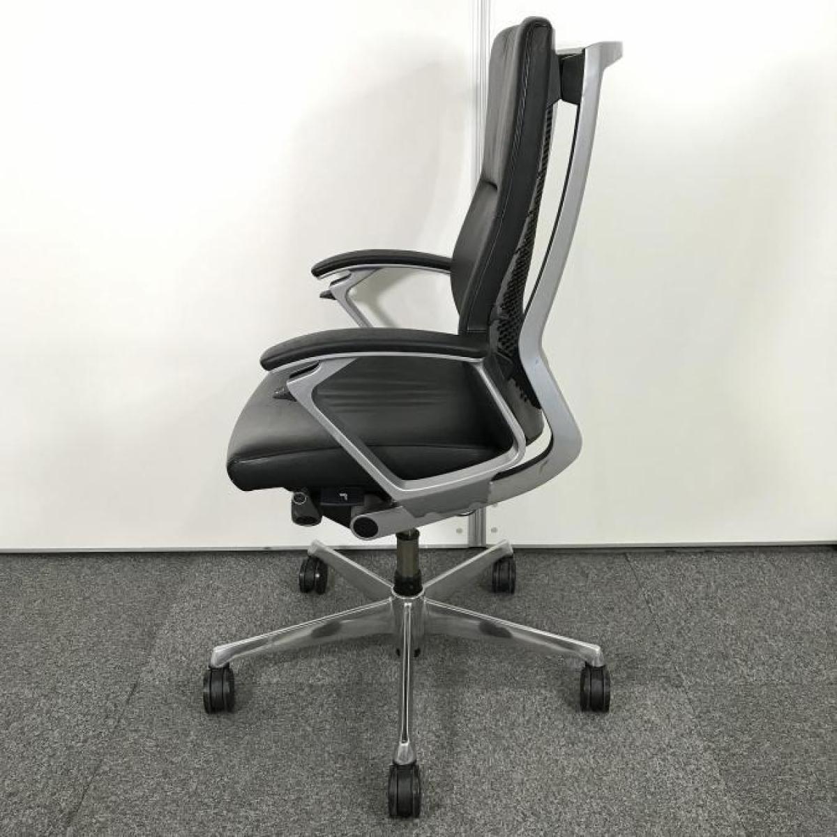 【滑らかで高級感あふれる座り心地が大人気!!】■オカムラ(okamura)製 デューク (DUKE)シリーズ 肘付ハイバック ■レザー張地 ■ブラック