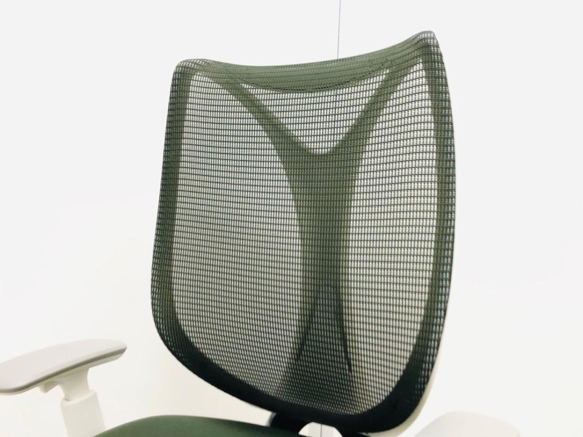 【美しい曲線&透明感のあるメッシュ】■オカムラ製 サブリナチェア ダークグリーン アジャストアーム付 ホワイトボディ ハンガー付【※外部倉庫在庫品(店頭在庫無)】【BR】