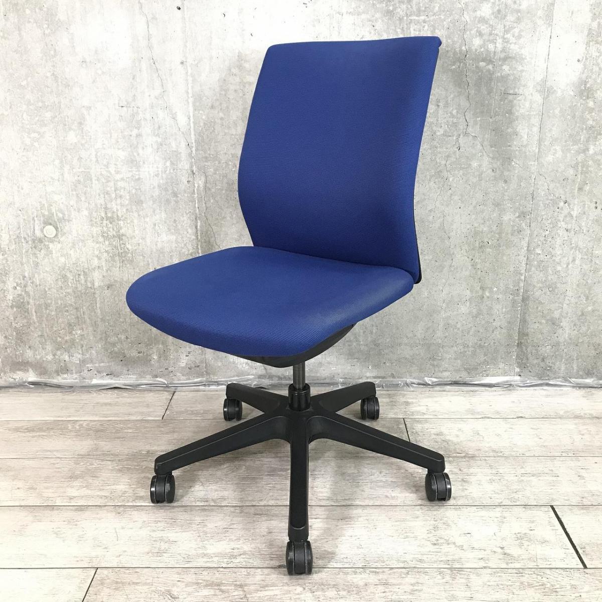 【ワークスタイルにフィットする、座る人を選ばないマルチパーパスシーティング】■オカムラ(okamura)製 オムネス(omnes)チェア 肘無 ローバック クッションタイプ ■ブルー×ブラックシェル【弊社使用欄:A01045509 K】
