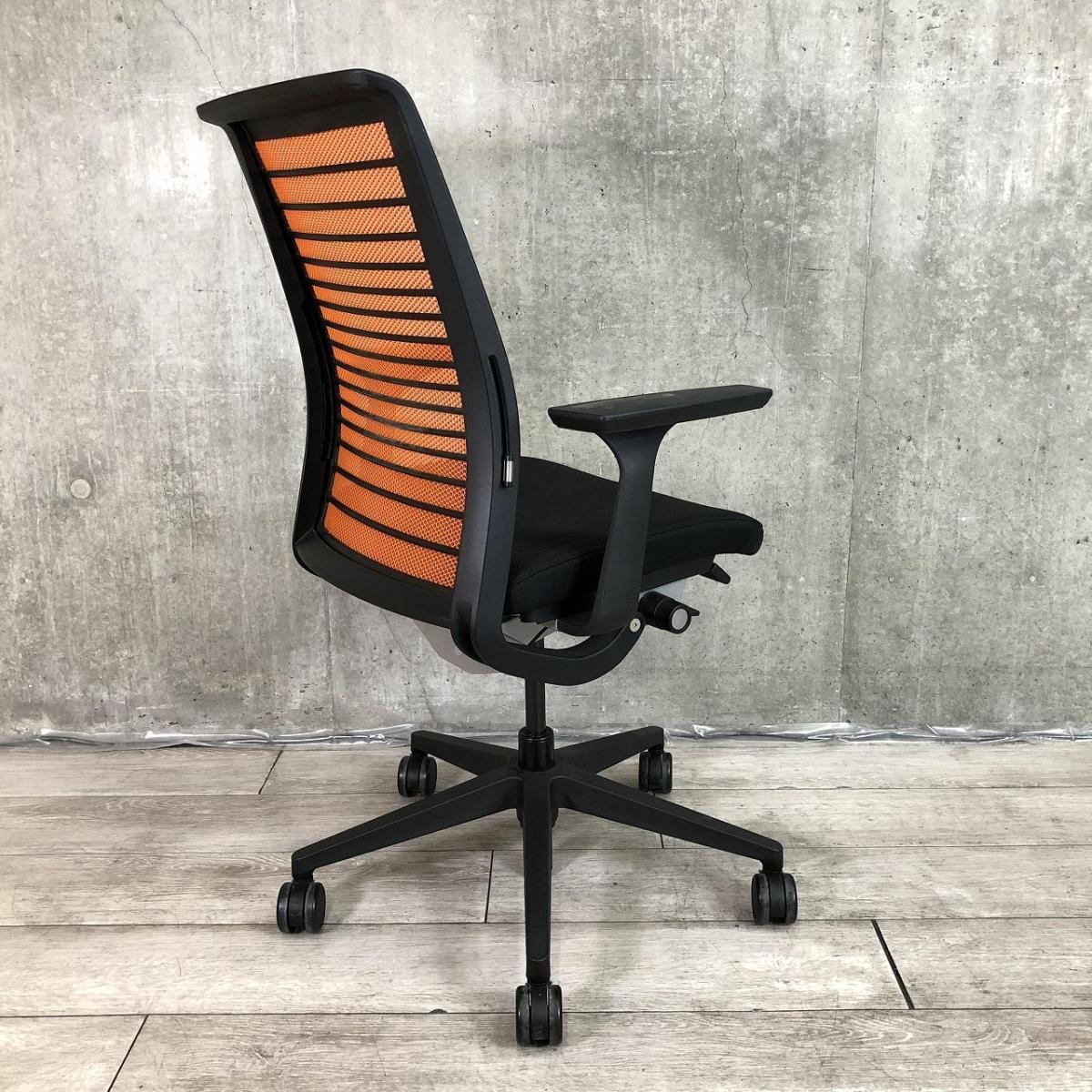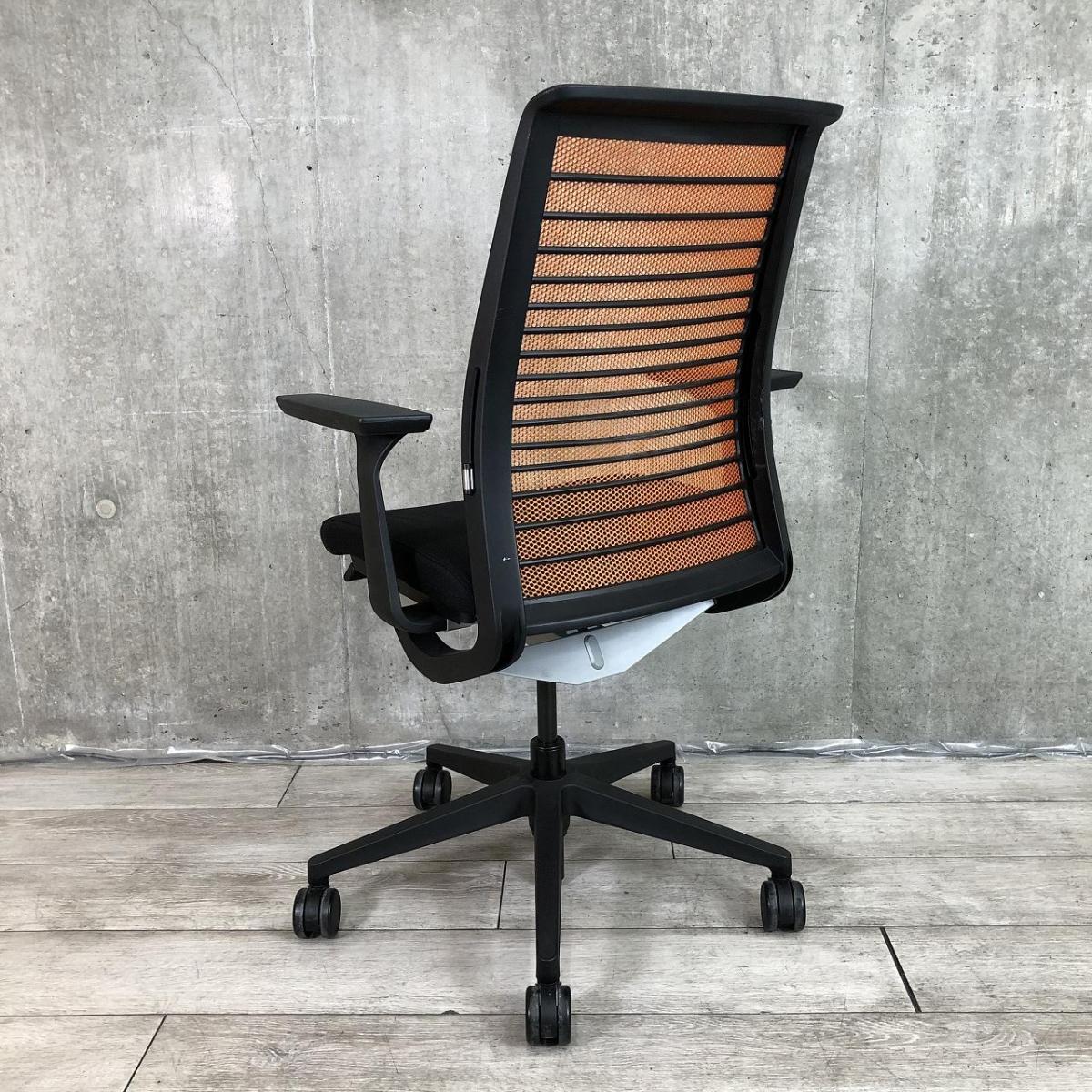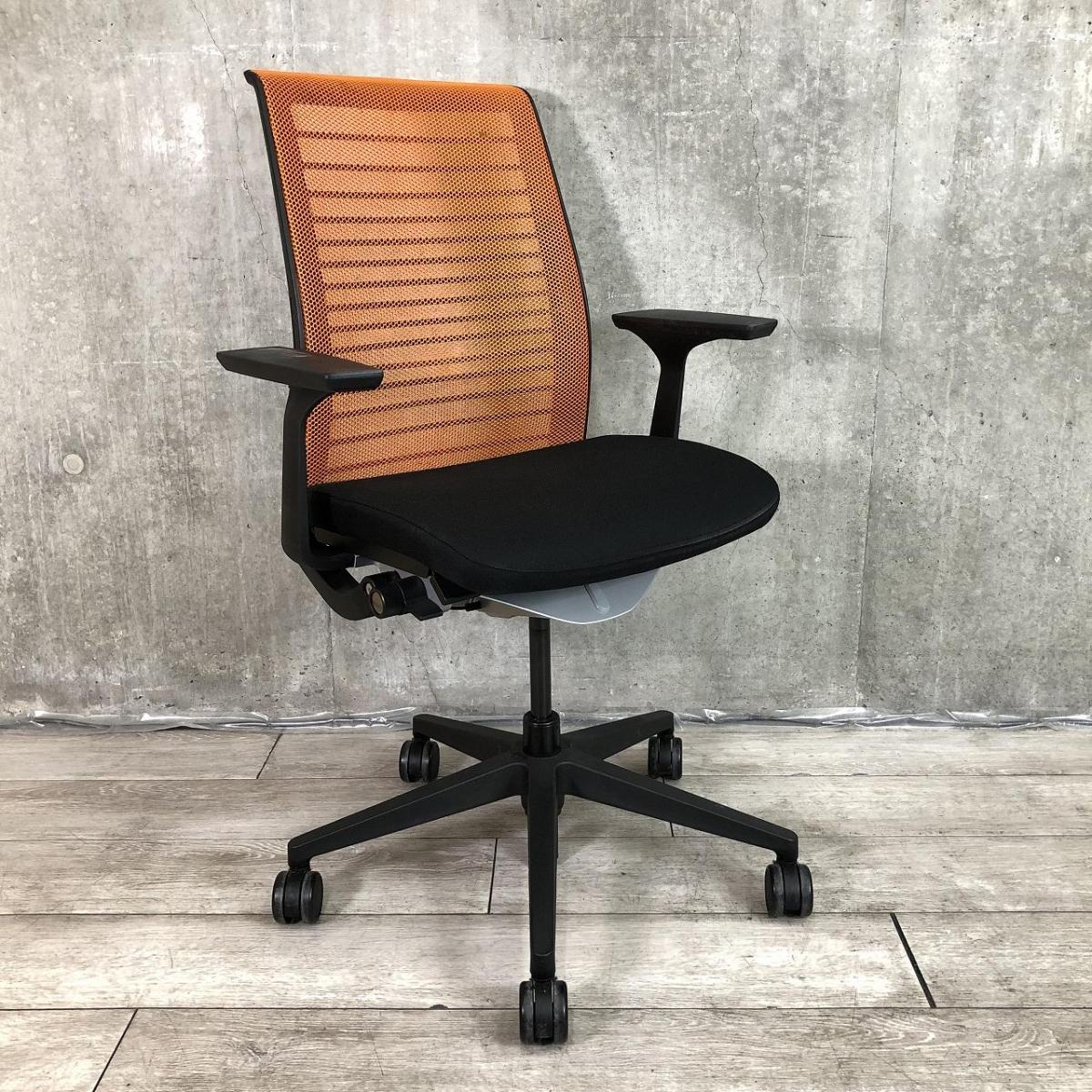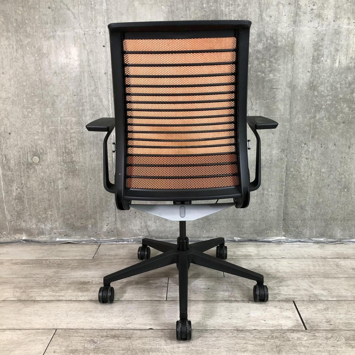 【定価約16万円】【ワイヤーが体にフィットするアメリカ発の大人気商品!長時間の着座ストレスを軽減!】 ■スチールケース(Steelcase)製 シンク(think)チェア 肘付き ハイバック ■メッシュバック ■固定肘/ランバー付 ■背面:オレンジ/座面:ブラック〈岐阜・愛知・三重・静岡・福井〉