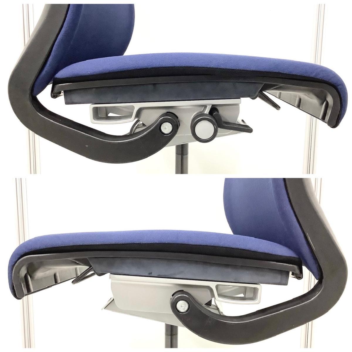 快適な座り心地に不可欠な調節機能である、上下昇降、座面の奥行き調整、リクライニングなどを備えており、操作もわかりやすく好評です。 特に、座面の奥行きは、座面下の左右に通った細いバーで調整でき、座ったままで軽やかに滑るように調整が可能です。 価格面では、新品では高めですが、中古は流通も多く、定価の3割前後の価格で高級チェアの座り心地を手に入れることができます!
