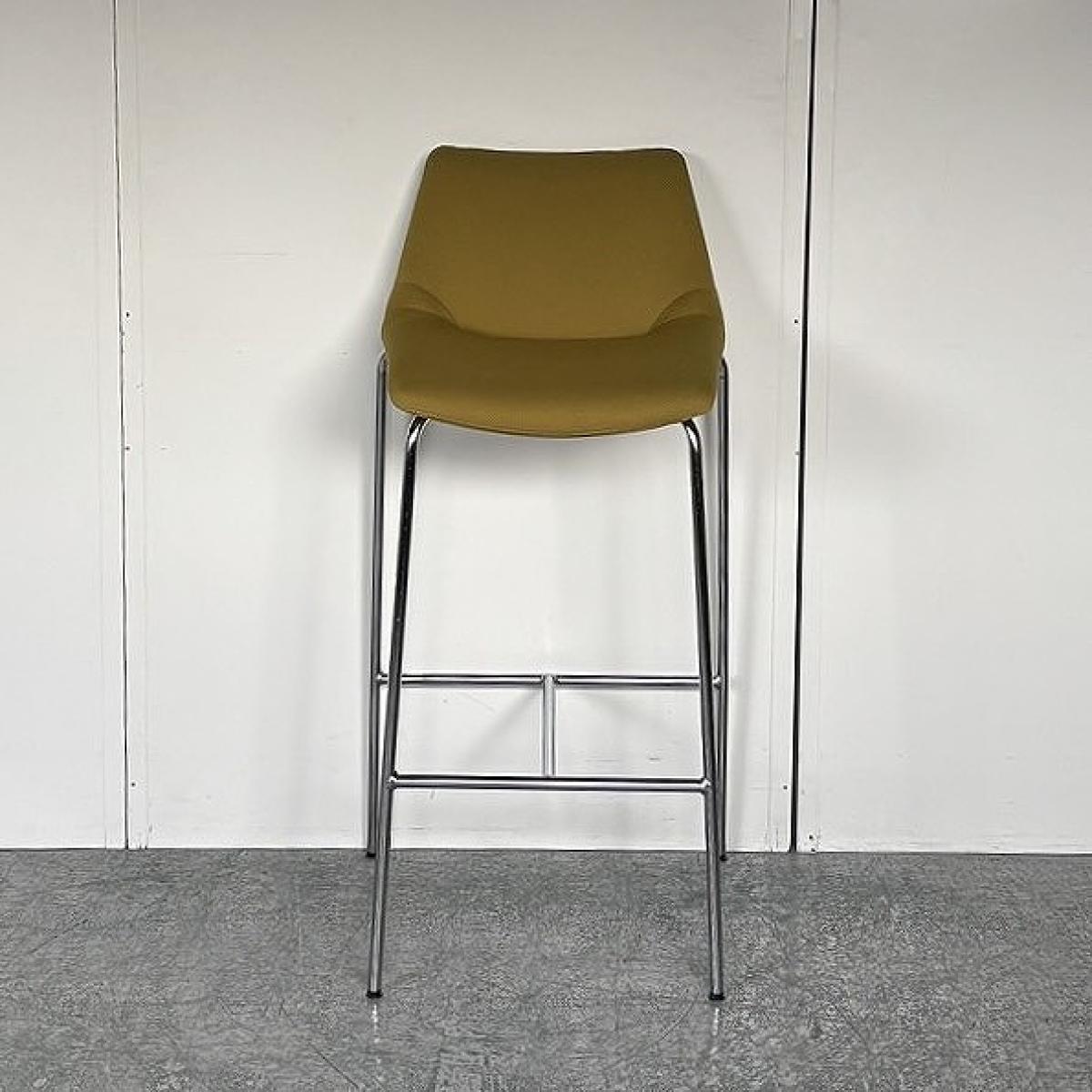 【デザイン性に優れたカウンターチェア!リフレッシュスペースやカフェ風オフィスにもマッチ!】■オカムラ(okamura)製 L107シリーズ ハイチェア カウンターチェア ■クッションタイプ・4本脚 ■足掛け付 ■グリーン- なんば日本橋店