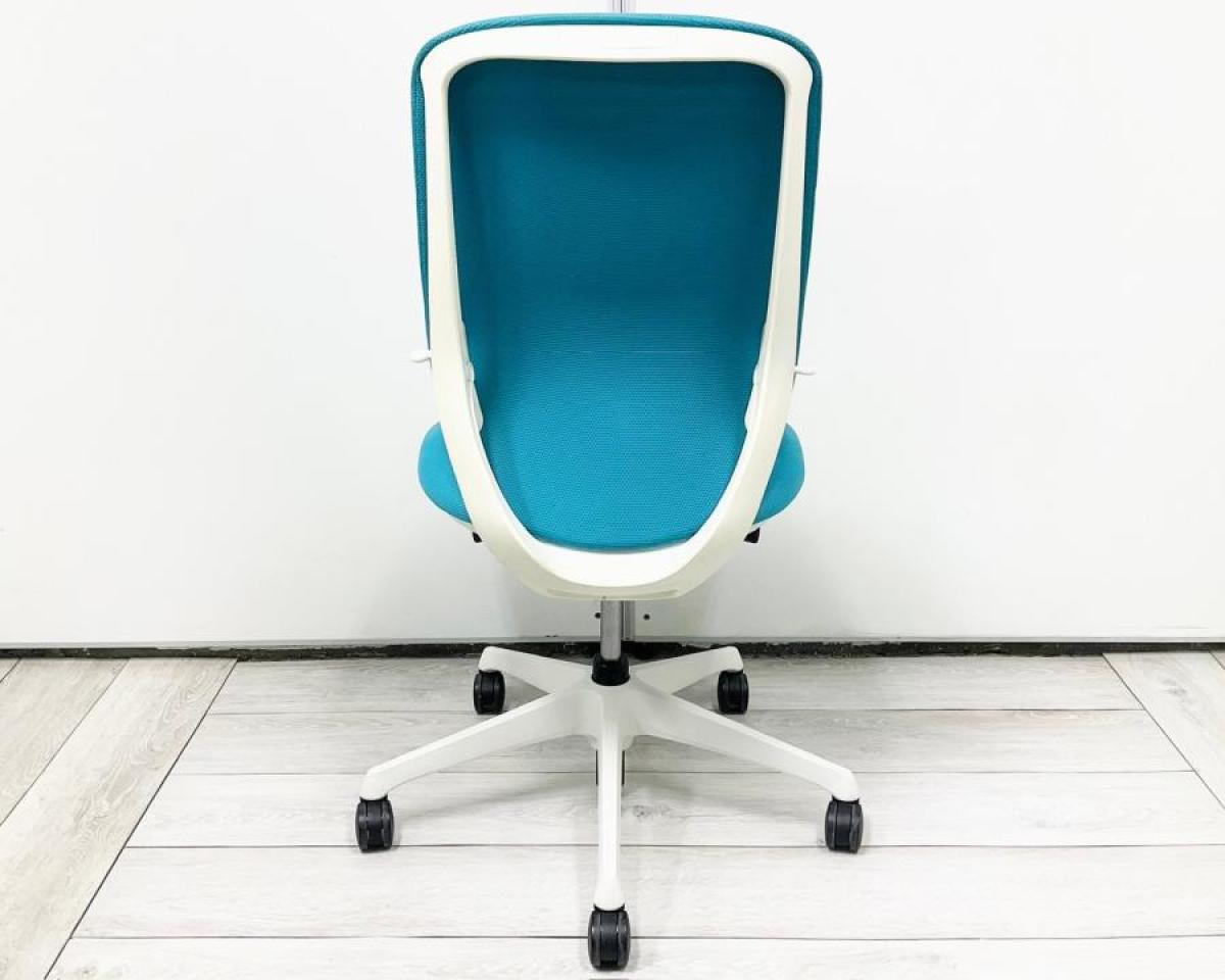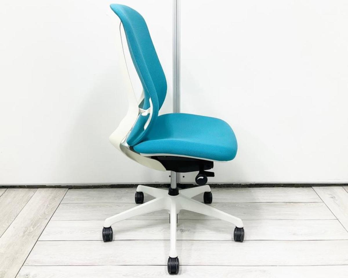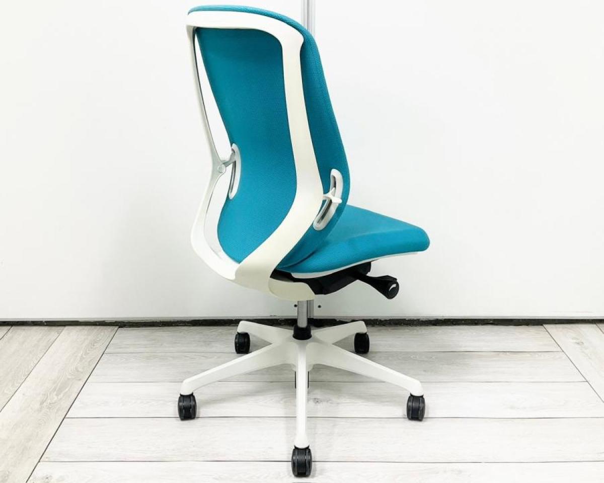 【背のカーブを変えられる! 新感覚のオフィスシーティング!】■オカムラ(okamura)製 シルフィーチェア ■肘無し ■ブルーグリーン×ブラックシェル ※上下昇降ガス圧弱めの商品となります。