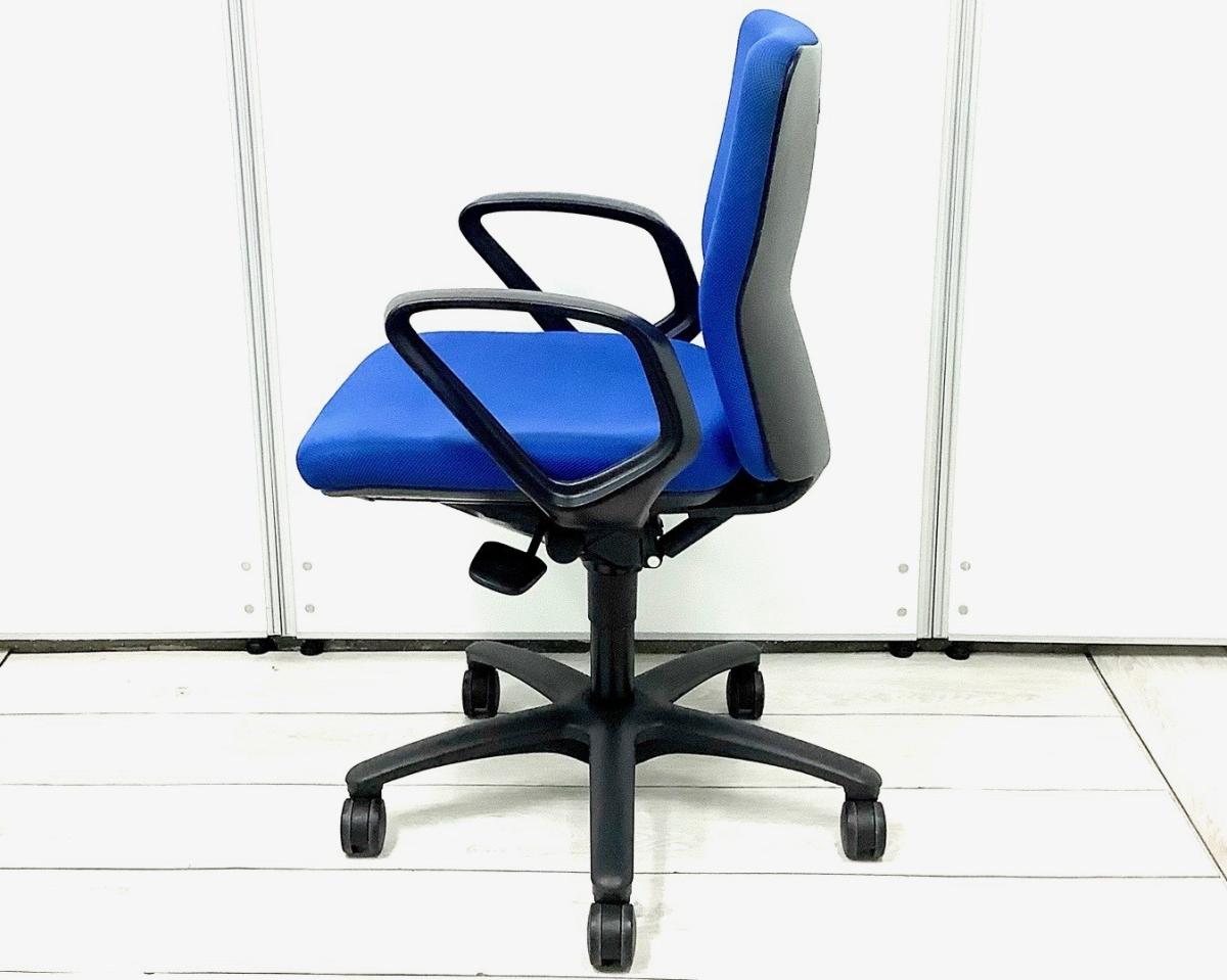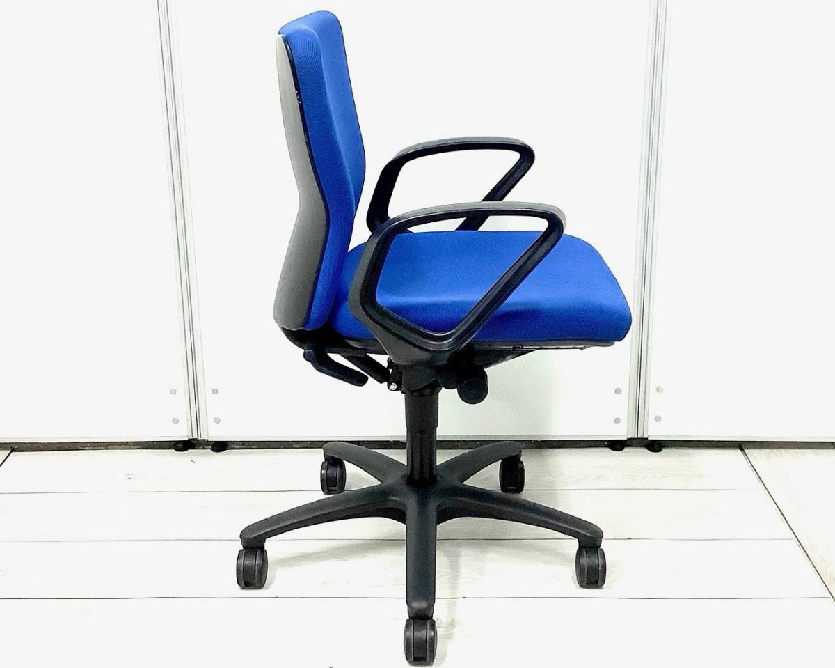 定番のオカムラ製のチェアが入荷!厚めのクッションで座り心地抜群! ■オカムラ/カロッツァ/ブルー ブラックシェル リング肘