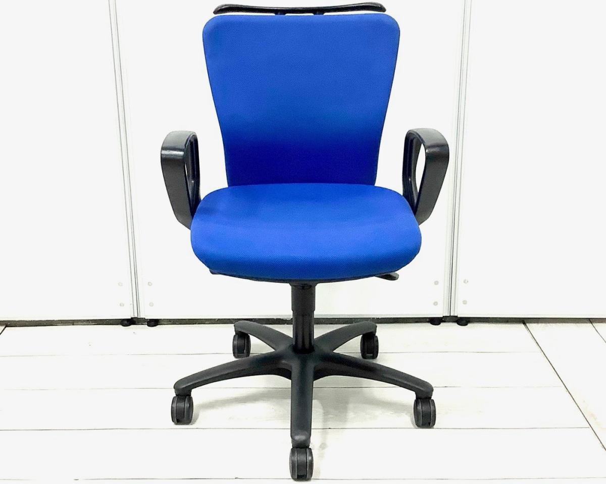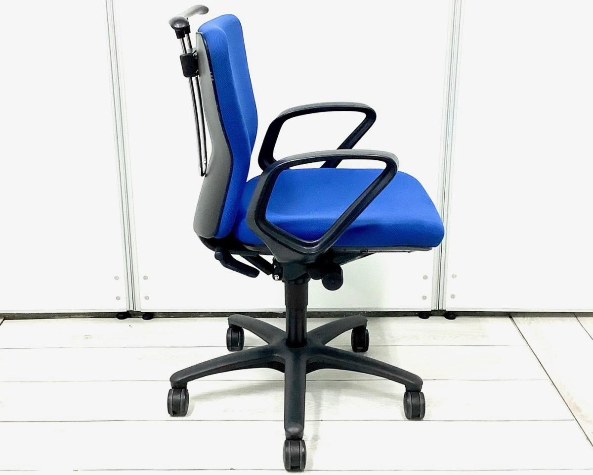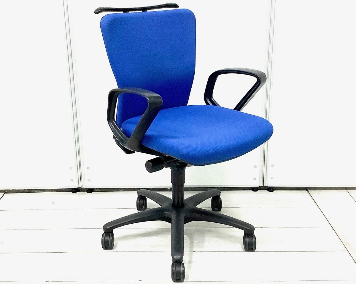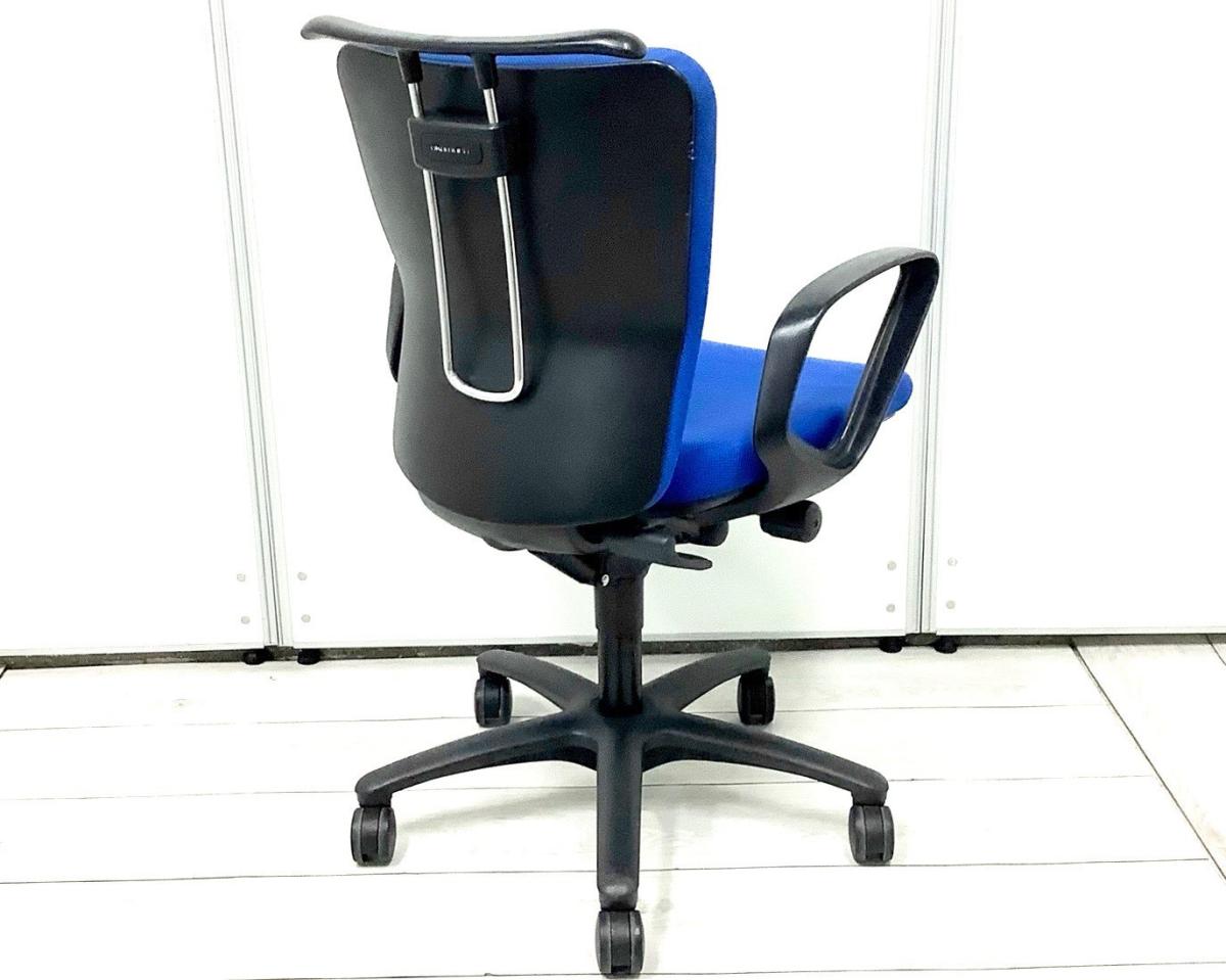 定番のオカムラ製のチェアが入荷!厚めのクッションで座り心地抜群! ■オカムラ/カロッツァ/ブルー ブラックシェル リング肘