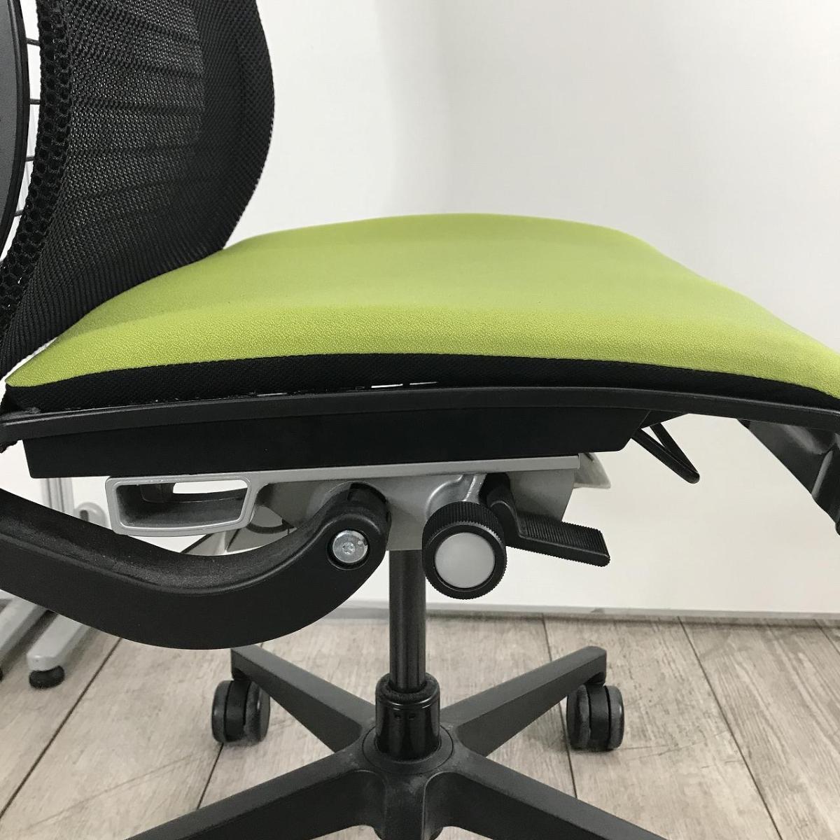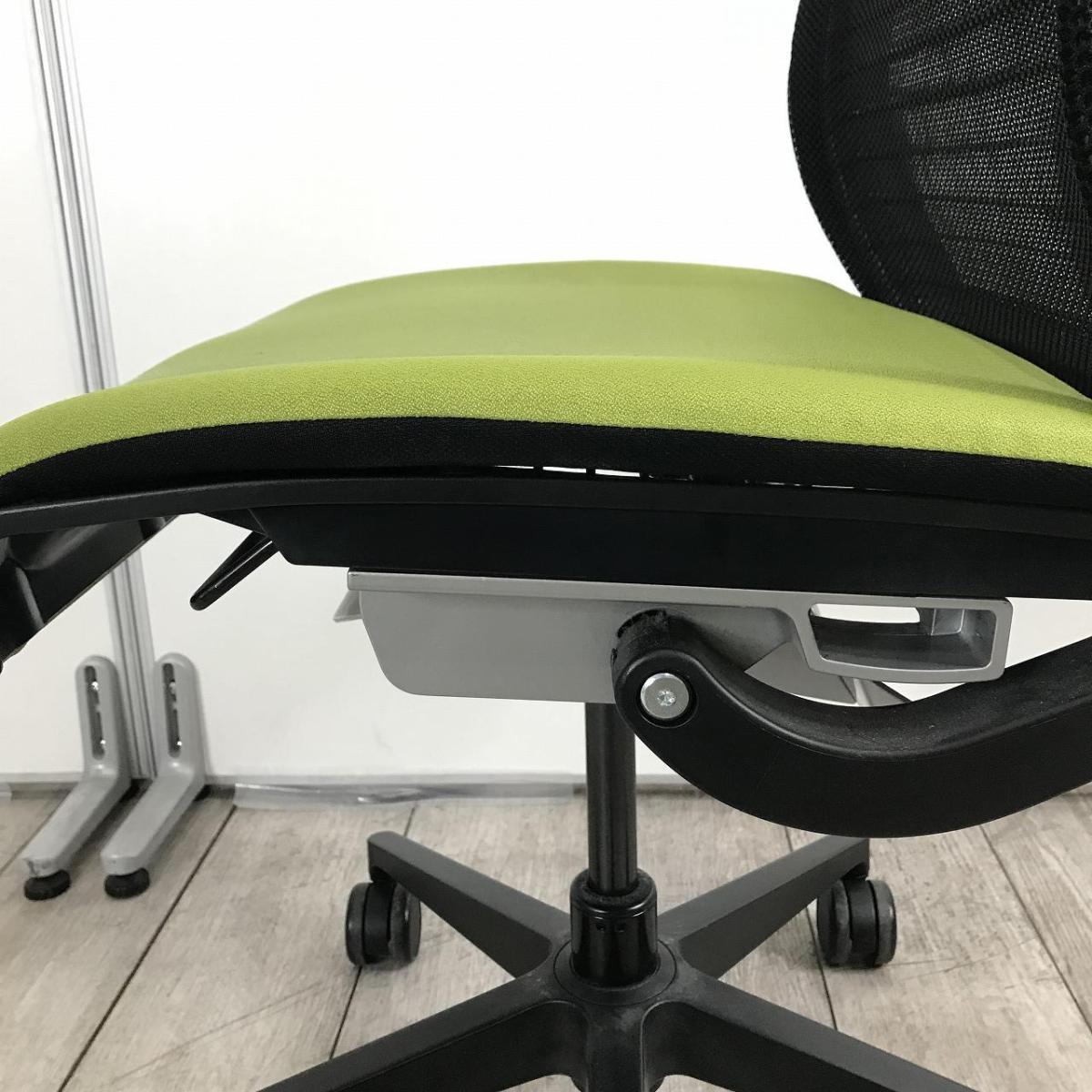 快適な座り心地に不可欠な調節機能である、上下昇降、座面の奥行き調整、リクライニングなどを備えており、操作もわかりやすく好評です。 特に、座面の奥行きは、座面下の左右に通った細いバーで調整でき、座ったままで軽やかに滑るように調整が可能です。 価格面では、新品では高めですが、中古は流通も多く、定価の3割前後の価格で高級チェアの座り心地を手に入れることができます!