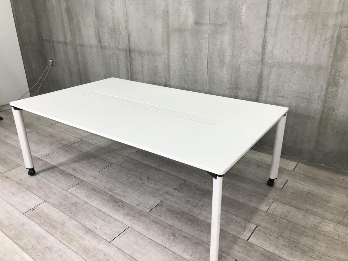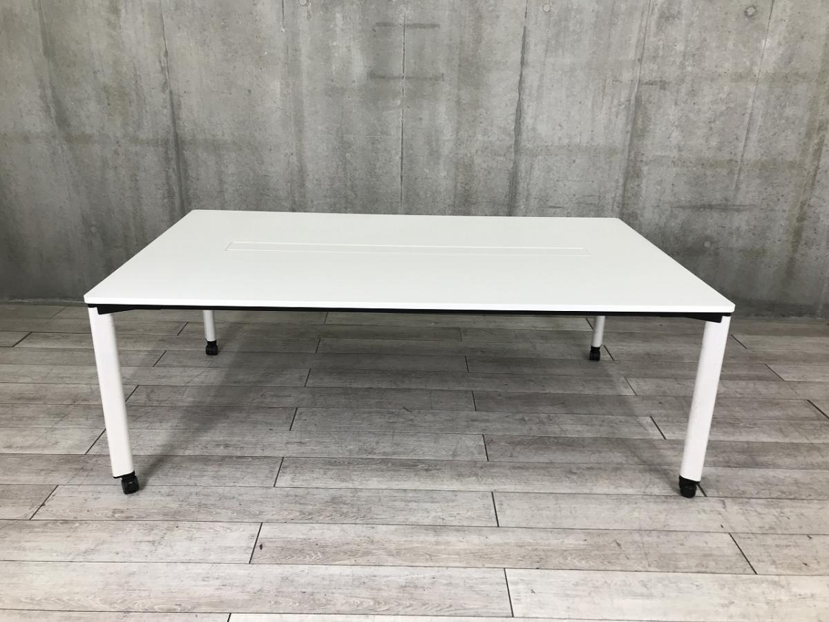 【シンプルで使い勝手抜群!4~6名様での使用におすすめ!!】■ウチダ(UCHIDA)製 ミーティングテーブル 角テーブル W2000×D1200㎜ ■配線カバー/キャスター付 ■ホワイト- つくば店