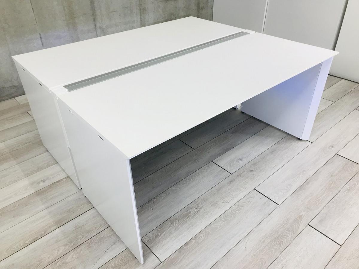 【倉庫在庫品】コクヨ製・『ワークヴィスタ』入荷!!【W1600】タイプ!2人使用で、一人使用サイズがw1600で使用でき広々お使い頂けます。解放感とコミュニケーションをアップさせてくれるデザイン!2人一組でチーム席としてのご使用も!!清潔感とスタイリッシュな組み合わせ!弊社使用欄【ホワイト】【脚シルバー】オフィスバスターズ 梅田本店