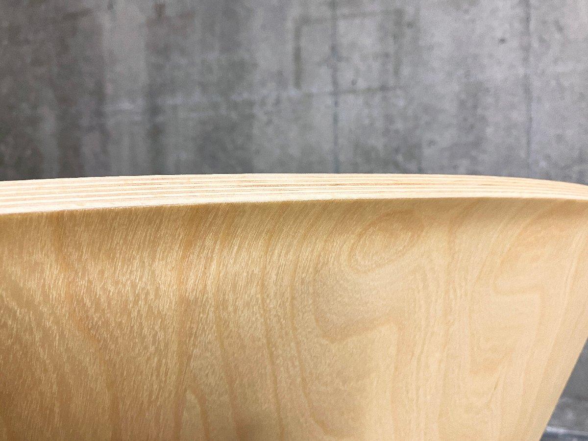 成型合板によるなめらかな曲線が、身体をやさしく受け止めるラウンジチェア。 背と座を一体で成形した軽快なフォルムは、ミニマルでありながら温かみを感じさせます。