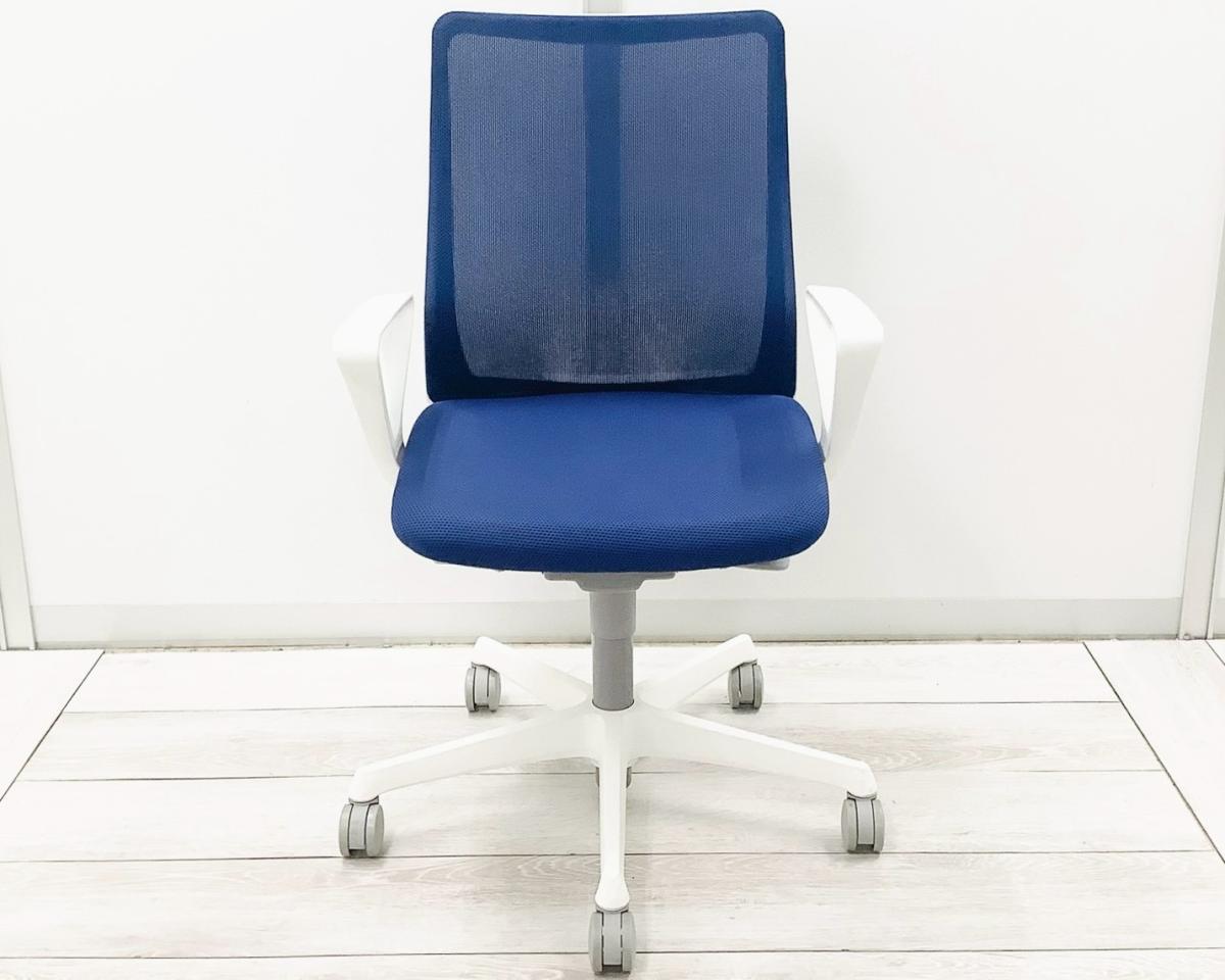 【背中を立体的に包み込むフィット感!】■オカムラ フルーエントチェア 肘付 ミディアムブルー ホワイトシェル ■あのシルフィの座り心地を低コストで再現!【Okamura Fluent】