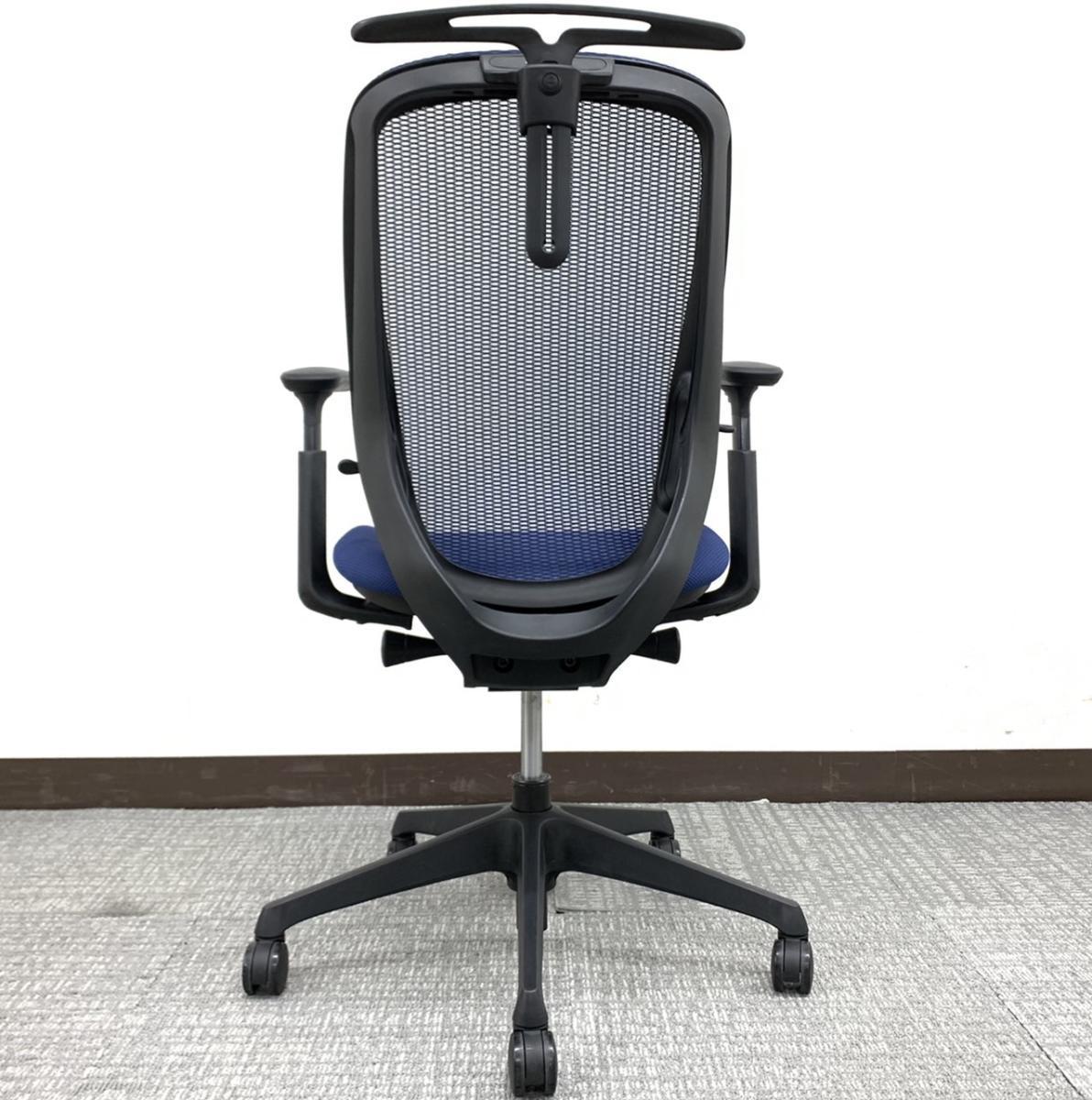 【新品ヘッドレスト交換済み】オカムラ/シルフィー/ブルー/可動肘
