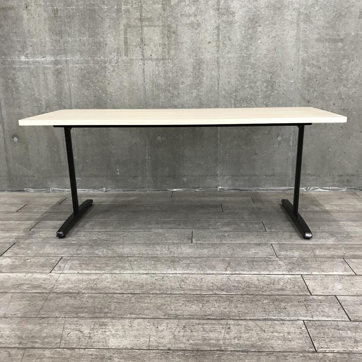 打ち合わせや作業にオススメのミーティングテーブル! ■オカムラ/8177シリーズ/天板カラー:プライズウッドライト 脚カラー:ブラック ミーティングテーブル 会議用 ■W1800×D750㎜- 立川・八王子店