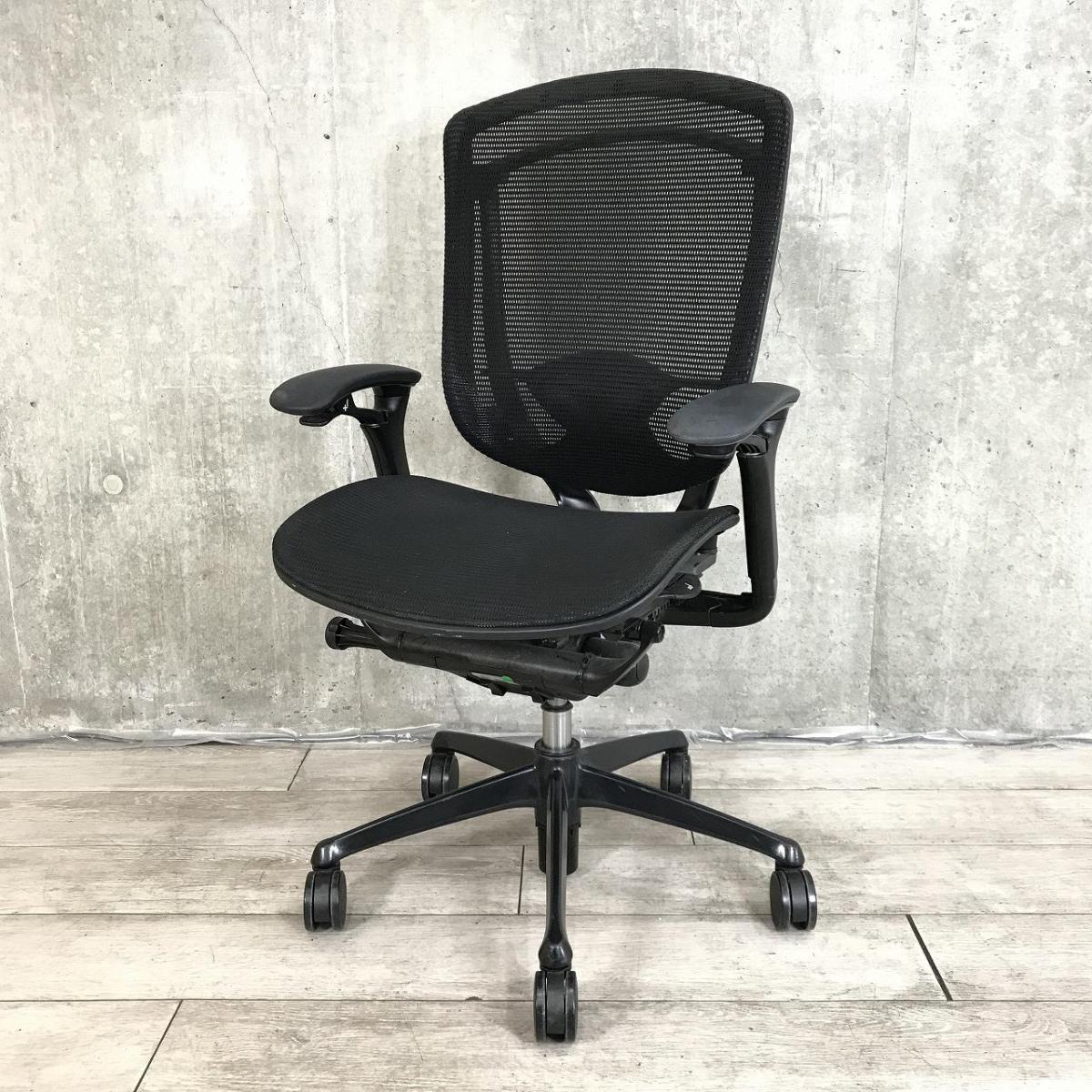 【世界で認められた革新的タスクチェア!人間工学に基づいた快適な座り心地を実現!】■オカムラ(okamura)製 コンテッサ(Contessa)チェア ハイバック 肘付き 背面メッシュ ■可動肘・ランバーサポート付 ■ブラック ※肘スレ有- 茨城南店