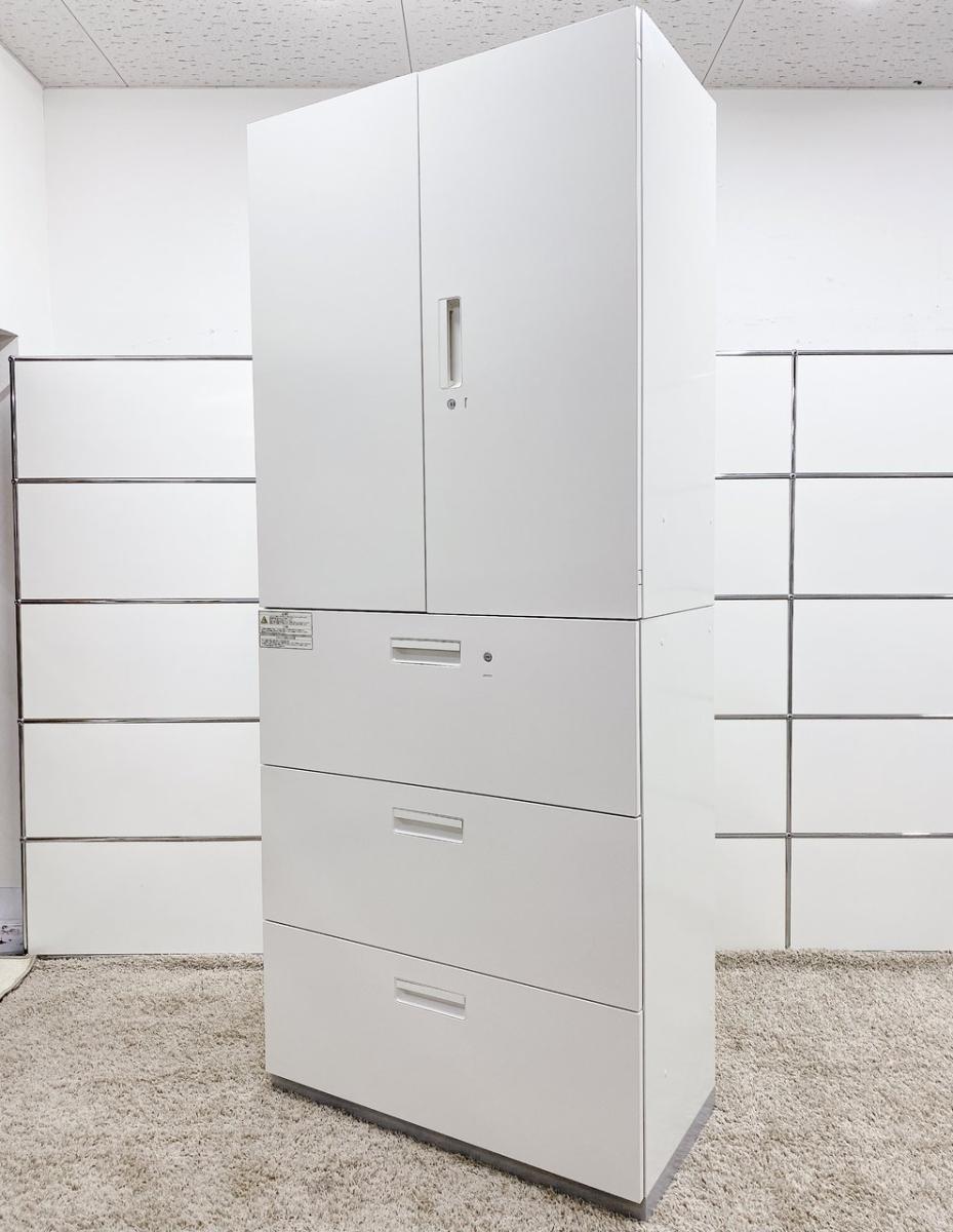 ★【T12】【商品入替のため、残り2台限り】プラス製 L6 ホワイト W900×D450×H2150 両開き+3段ラテラル シリンダー錠 オフィスの書類をスッキリ整理! 両開きと引き出し式の人気の組み合わせ! ハイキャビネット 上下書庫セット!!