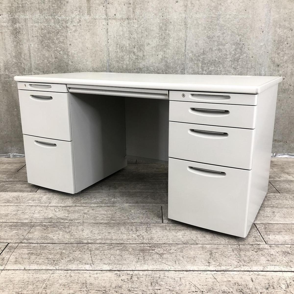 上長席・役員向けサイズ オカムラ SDデスクシステム 両袖机 定番のW1400サイズ 汚れの目立ちにくいニューグレー 鍵付き シリンダー錠