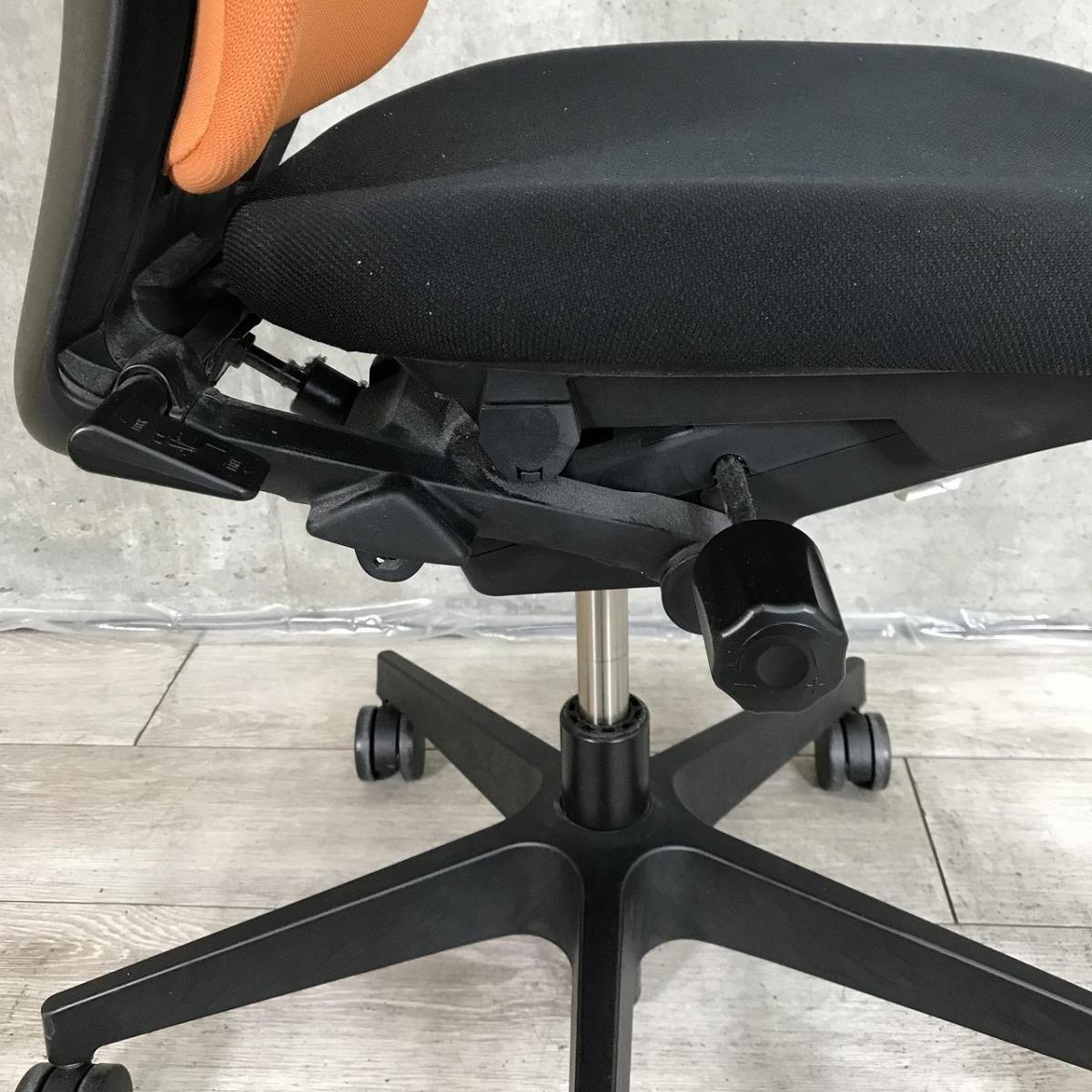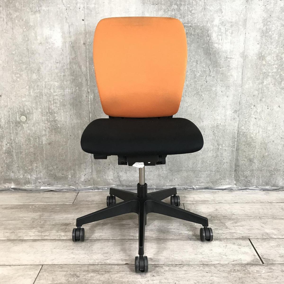 【背のハイ・ロー切替が出来る!「汚れにくさ」から生まれたスタイリッシュデザインのOAチェア!】■イトーキ(ITOKI)製 フルゴ(fulgo)チェア 肘無し ハイバック ■背面:アンバーオレンジ/座面:ブラック ※シェルキズ有サーキュラーバリューCO2削減量の算出について