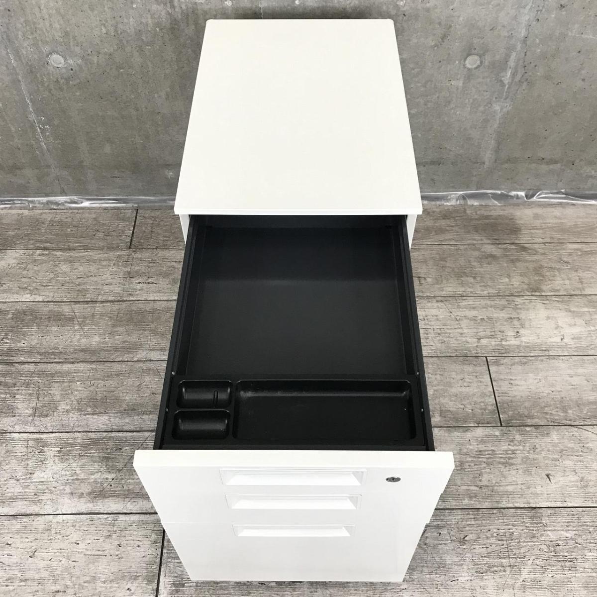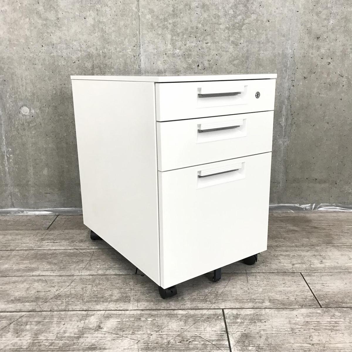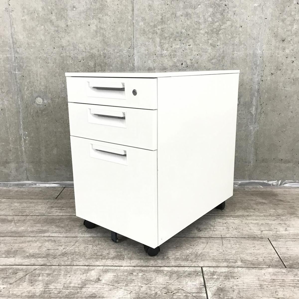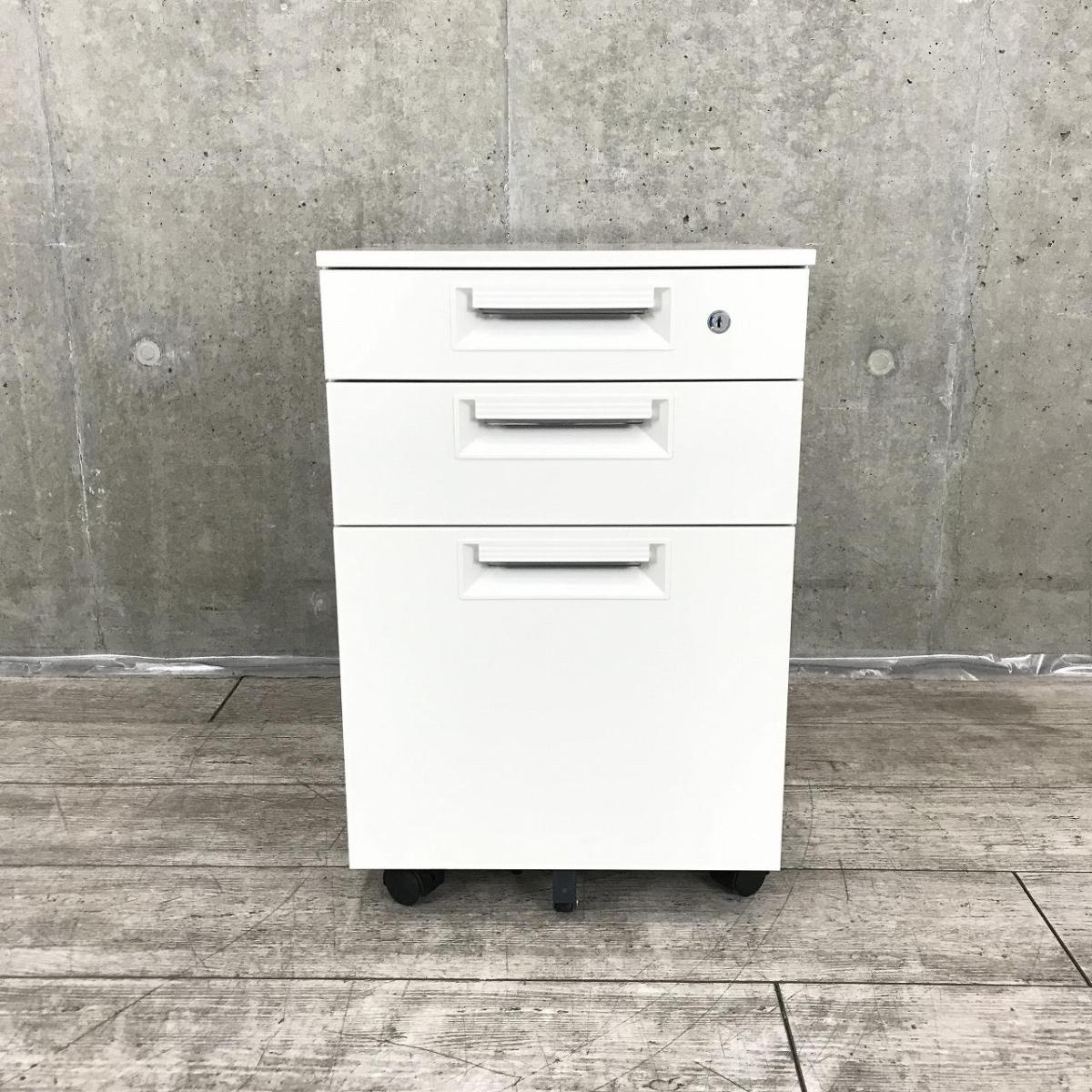 こちらはホワイトカラーで引き出し3段のワゴンになります。